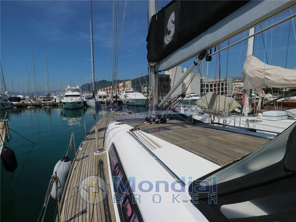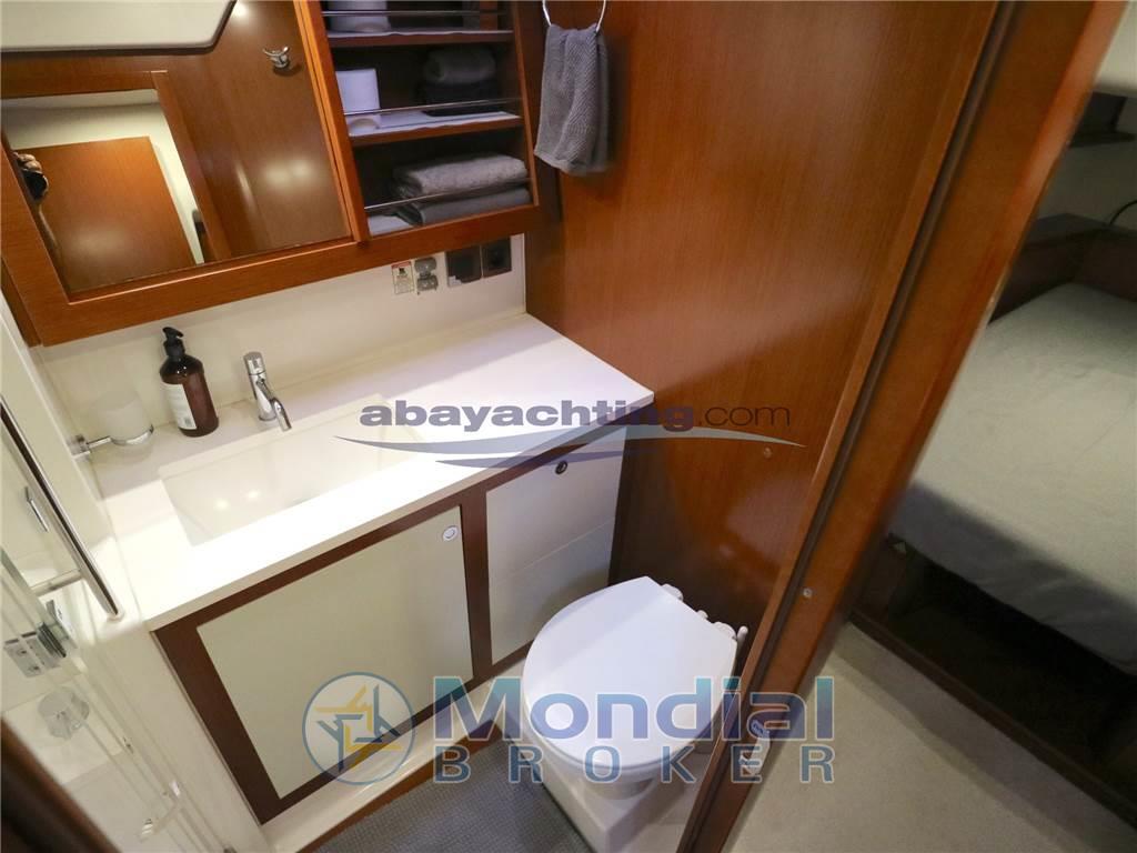 Notas internasNotas de la instrumentaciónAIS (ricevente), Antenna radar, Bussola, 2 Display (2 x Display GPS Raymarine ( esterno+ Interno)), Ecoscandaglio, Log, Pilota automatico, Radio VHF, Stazione vento.Notas de armamentoAllestimento tecnico e di coperta:Ancora (+ catena), Camminamenti laterali in teak (Originale), Doccia esterna (Hot/Cold), Doppia timoneria, Elica di prua - bow thruster (Tunnel), Passerella (Idraulica), Pompa di sentina elettrica, Ponte in teak (Originale), Porta ingresso (Elettrica), Presa 220V banchina, Presa acqua banchina, Rollbar (Laccato bianco), Salpa Ancore Elettrico (con contametri), Sartiame spiroidale (originale), Scaletta da bagno, Tavolo pozzetto, Tuga in teak, 4 Winch Elettrico (Elettrici), Winch tonneggio di prua (con barbotin del salpa ancora), Windex. Dotazioni domestiche di bordo: Aria condizionata (Hot/Cold (4 gruppi)), Dissalatore (Shenker 35 lt/h), Impianto acque nere (Casse bypassate c/scarico diretto mare), 3 WC marino elettrico. Intrattenimento: Altoparlanti (Bose), Stereo, TV. Cucina ed elettrodomestici: Congelatore (in cabina marinaio), Cucina, Forno, 3 Frigorifero interno, Lavasciuga, Lavastoviglie (solo predisposizione). Tappezzerie: Bimini, Cappottina, Cuscineria Pozzetto, Telo copriconsolle. Vele: Randa (Full battens su carrelli selden (originale)), Genoa (Avvolgibile (originale)), Avvolgi Fiocco (Manuale), Lazy Bag, Lazy Jack, Strallo di Trinchetta (con rotaia autovirante), Tenditore strallo di poppa (Idraulico), Vang rigido. |