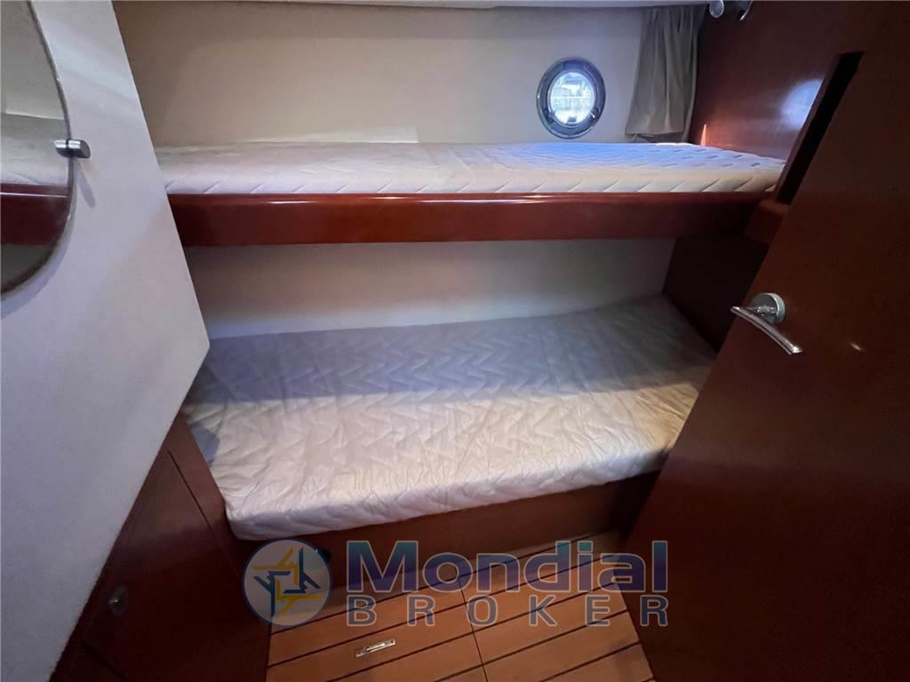 Notas internasNotas de la instrumentaciónAntenna radar (RAYMARINE), Bussola (PLASTIMO), Comando motori elettronico, 2 GPS (C90 RAYMARINE), Pilota automatico (RAYMARINE), Radar, Radio VHF (RAY 240E).Notas de armamentoAllestimento tecnico e di coperta:Allarme sentina, Ancora (DANFORTH), Doccia esterna, Doppia timoneria, Elica di poppa - stern thruster, Elica di prua - bow thruster, Faro orientabile, Flap elettrici, Gruette per tender su fly, Passerella (IDRAULICA), Pompa di sentina elettrica, Pompa di sentina manuale, Porta ingresso, Porta laterale, Presa 220V banchina, Presa acqua banchina, Salpa Ancore Elettrico, Scaletta da bagno, Tavolo pozzetto. Dotazioni domestiche di bordo: Impianto acque nere, Prese interne 12v, Prese interne 220v, Riscaldamento (WEBASTO), Serbatoio Acque Nere, WC marino elettrico. Intrattenimento: Altoparlanti, Radio AM/FM, Stereo, TV. Cucina ed elettrodomestici: Cucina (2 fuochi), Fornello, Forno, Frigorifero interno. Tappezzerie: Bimini, Cuscineria completa, Cuscineria di prua, Cuscineria fly. |