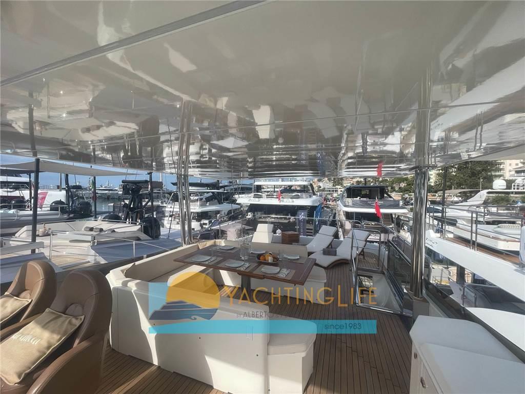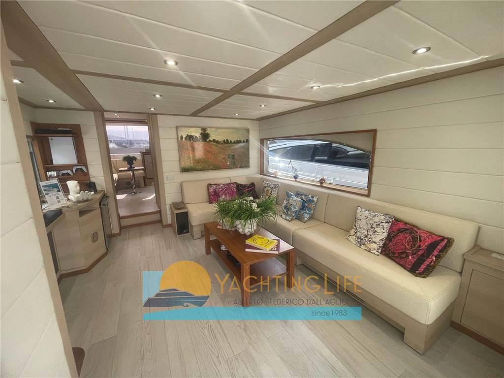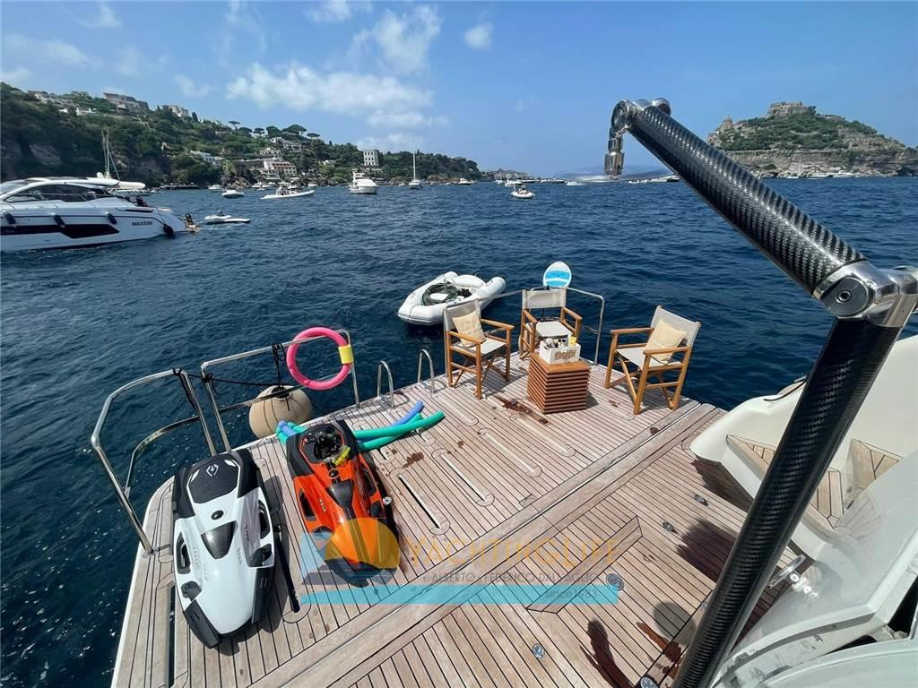 Notas de armamentoAltoparlanti, Antenna Satellitare TV (Starlink), Aria condizionata (70.000BTU 2023), BBQ/ Grill, Boiler, Cassaforte, Clima reversibile, Collegamento internet, Collegamento internet satellitare, Congelatore, Controllo Domotica, Cucina, Cuscineria completa, Dimmer per Luci, Forno, Frigorifero esterno, Frigorifero interno, Impianto acque nere, Impianto TV, Inverter, Meccanismo saliscendi per TV, Microonde, Oscuranti, Pavimento interno in legno, Piastra in vetroceramica, Prese interne 12v, Prese interne 220v, Ricevitore satellitare, Riscaldamento, Serbatoio Acque Nere, Stereo, Telecamera, Tendalino, TV, 4 WC marino elettrico, Zattera di salvataggio