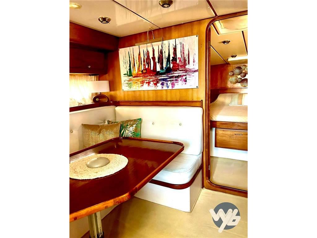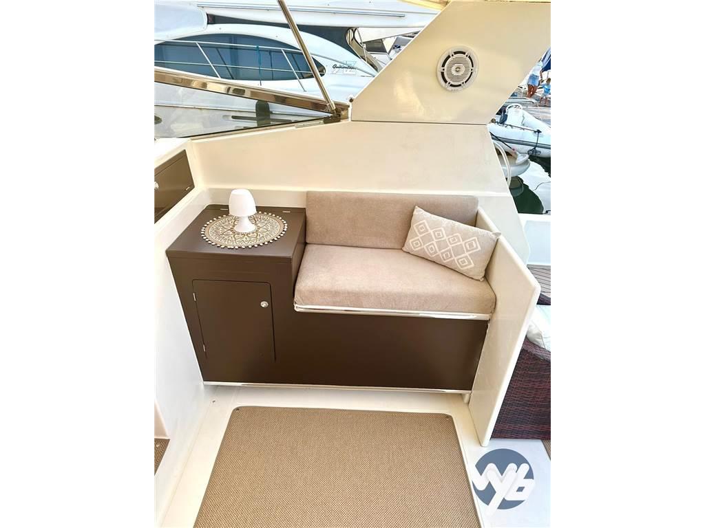 Notas internasNotas de la instrumentaciónAngolo barra, Bussola, Contamiglia, GPS, Pilota automatico, Radio VHF.Notas de armamentoAllestimento tecnico e di coperta:Allarme motore, Allarme sentina, Doccia esterna, Flap idraulici, Luci subacquee, Passerella, Pompa di sentina elettrica, Pompa di sentina manuale, Presa 220V banchina, Rollbar, Salpa Ancore Elettrico, Scaletta da bagno. Dotazioni domestiche di bordo: Prese interne 12v, Prese interne 220v. Intrattenimento: Impianto TV, Stereo. Tappezzerie: Cuscineria completa, Tendalino. |
