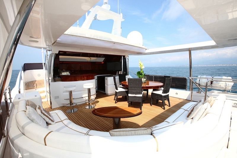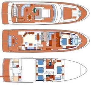 Notas internasNotas de armamentoCubierta de proa, flybridge, bañera y plataforma de baño en teca. Tabla de madera de la cabina. Paseo eléctrico, suelos de madera y alfombras. Bar y cocina sobre la marcha. iluminación exterior escaleras y pasillos.Instrumentación de navegación de primer nivel. |