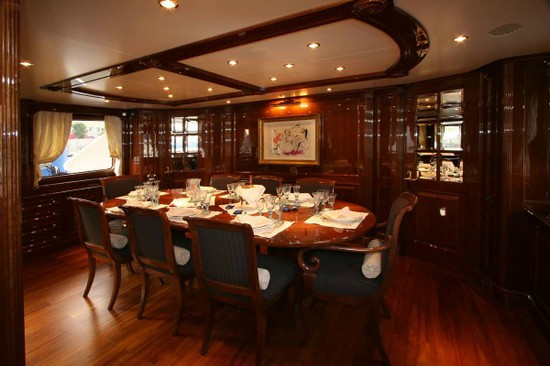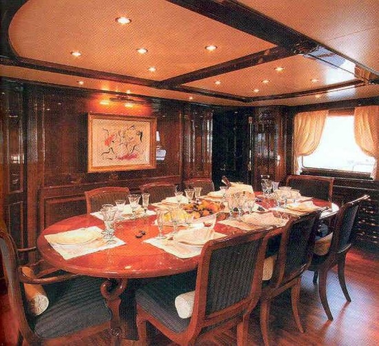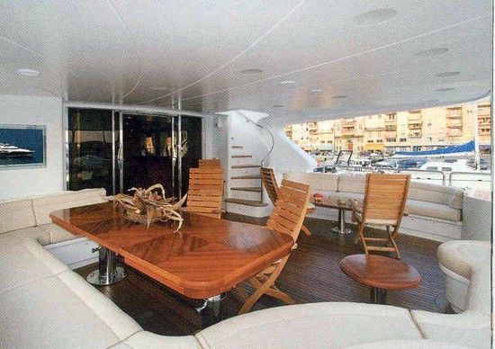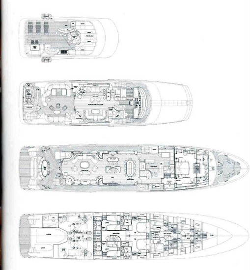 Notas internasUn puerta eléctricas y automáticas acceso a la sala principal donde nos encontramos con un sofá semicircular, una televisión de pantalla LCD retráctil, 2 sillones y una mesa de ancho, óvalo. Los pisos son de madera. Hacia el arco, hay un bar lounge. En el centro del barco, la escalera que conduce a las cabinas de los visitantes a la cubierta inferior. Procedimiento, una mesa de comedor. Desde el salón, inicia sesión en tu cocina, con encimeras de granito, nevera, 2 2 se congela, una celda para vinos. En la cocina se encuentra la tripulación dinette sirvió como un sistema de control de audio y visuales. Una escalera recta que conduce a la tripulación de noche y lavanderÃa. Hacia la proa a estribor del salón, el vestÃbulo hacia la proa hacia el apartamento del propietario. Al puerto de la escalera que conduce a la cubierta superior. Apartamento del propietario, con un King size cama doble, un armario, un vanty de escritorio, un sofá pequeño y un televisor LCD y un sistema de música estéreo. El baño principal es quipaggiata con jacuzzi, ducha independiente, dos fregaderos y wc separado y bidet. Las cabinas de invitados VIP son gemelas, 2 cabinas con cama, armario, Tv, música. Un amplio cuarto de baño con ducha. Las cabinas de invitados son 2 camarotes dobles tienen 2 camas, armario, tv, música y baño con ducha. En el piso superior son la caseta equipada con todos los última navegación de sistemas, un amplio salón y solarium, reservado para el área privada del propietario con Jacuzzi rodeado de colchones reciben el sol, un bar con fregadero con 3 taburetes, mini-nevera, fábrica de hielo y un fregadero. Proceder después de las escaleras de acceso, una mesa de comedor, con sofá en forma de u y 2 sillas para 8 personas. Notas de la instrumentaciónCasetaNº 1 Radar Furuno NAVnet FR7112 (arpa) Nº 1 Radar Furuno FR7112 Nº 1 Sperry Marine Plath Navigat Nº 1 Chart Plotter TRANSAN náutico-Tsunamis Navigator Barra indicadora de Nº 1 Brújula Nº 1 Registro del sistema Nº 1. Hydra B G & 2000 Nº 1 vÃdeo profundidad sonar Furuno Nº 1 piloto automático Sperry Marine Plath HSC Navipilot V Nº 1 FURUNO GPS Navigator como WA Nº 1 GPS FURUNO GP37 Nº 1 NAVTEX Furuno NX500 Nº 1 B de la unidad & G Hydra 2000 Nº 1 Radio MF/HF SSB Skanti 1150 DS 150W Nº 2 VHF DSC 1000 Skanti Nº 1 PBX integrado GSM Nº 1 Monitor de vÃdeo CCTV Panasonic WV-CM 10200 Arco PROPULSOR Koopnautic kW Koopnautic estabilizadores 2 Idromar DESALINZZATORI de 3840 L/dÃa & pueblo marino 7680 L/dÃa un total de 11.520 litros/dÃa A/acondicionado Condaria sistema doble bomba COMPRESOR. ¿D?Eettrico aire 360 L/min a 8 bar HAMANN DE TRATAMIENTO DE AGUA Notas de armamentoCOCINA2 x FRIGIT deep congeladores nevera x 2 FRIGIT Horno eléctrico miel vitrocerámica de inducción 5 miel Miel de Hood con filtro Microondas miel MG 625 M Lavavajillas MIELE Compactador de basura Celda para vinos,70 botellas EUROCAVE confort (en el comedor de la tripulación de área) LavanderÃa Lavadora MIELE profesional WS 5446 MIELE secador profesional T 5026 Sistema SKY TV SAT Salón: Nº 1 TV de SONY 40 ' Nº 1 Nº 1 Sony sistema estéreo con reproductor de CD,FM-Am radio sistema BOSE con Dolby Sonido envolvente. Nº 1 CD/DVD Sony DVP-NS355 Receptor de satélite SKY de Nº 1 Cabina: TV de SONY 40 ' Nº 1 Nº 1 estéreo con reproductor de CD,FM-Am radio sistema BOSE con Dolby Surround Nº 1 CD/DVD Sony DVP-NS355 Receptor de satélite SKY de Nº 1 2 Cabañas VIP de invitados: Nº 1 ' 15 SHARP AQUOS TV VCR Nº 1 CD/DVD Sony DVP-NS355 Receptor de satélite SKY de Nº 1 Guest cabinas: 2 Nº 1 ' 15 SHARP AQUOS TV VCR Nº 1 CD/DVD Sony DVP-NS355 Receptor de satélite SKY de Nº 1 Habitación superior: TV de SONY 40 ' Nº 1 No. 1 SONY 37 ' TV estrena en cubierta Nº 1 estéreo con reproductor de CD,FM-Am radio sistema BOSE con Dolby Surround Nº 1 CD/DVD Sony DVP-NS355 Receptor de satélite SKY de Nº 1 Tripulación: Nº 1 ' 15 SHARP AQUOS TV Nº 1 CD Sony L380X stereo CD-X Receptor de satélite SKY de Nº 1 Comandante de la cabina: Nº 1 CD Sony CD estéreo. marineros cabina: 2 x Nº 1 CD Sony CD estéreo Caseta y Galera Nº 1 CD Sony CD estéreo |