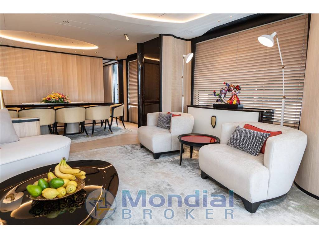 Notas internasTre cabine equipaggio con alloggio per 5 persone. Salone su ponte principale con tavolo da pranzo per 10 persone. Cucina completa con cantinetta vini con 38 bottiglie. Notas de la instrumentaciónImpianto elettrico ed elettronico BEST (Benetti Exclusive Sea Technology).2 Generatori da 55Kw 230V (3029 ore). Notas de armamentoPonte superiore con tavolo esterno da 8 a 10 sedute, cantinetta vini, icemaker, barbecue, jacuzzi.Ponte anteriore con lettini prendisole e tavolo. Tv sat, Dissalatore Idromar 375lt/h, Mobili pozzetto. Bitte addizionali per ormeggio tender su piattaforma bagno, 6xLuci subacquee Cantalupi, Capottina con supporti in acciaio. |