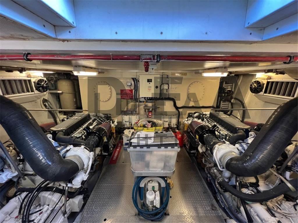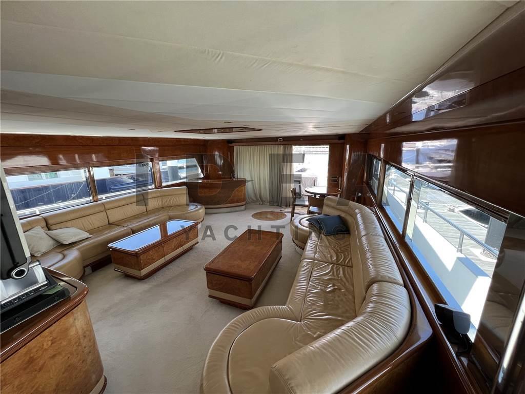 Notas internasCabina ospiti con due letti singoli ensuite Cabina ospiti con letto matrimoniale ensuite Cabina VIP ensuite Notas de la instrumentaciónAngolo barra, Bussola (Magnetic Riviera), Comando motori elettronico, 2 Display (Eco Furuno RD 30, furuno NAVnet), DSC vhf, Pilota automatico (Simrad AP25), Plotter (Furuno GP 3500), Radar (Furuno), Radio VHF (Horizon Quantum GX5000S, Icom IUC M127), Sedile Copilota, Sonar (Furuno).Notas de armamentoAllestimento tecnico e di coperta:2 Ancora (Bower 183 Kg 128 Kg), Camminamenti laterali in teak, Elica di prua - bow thruster, Fari fissi a poppa, Faro orientabile (Sanshin), Gruette, Gruette per tender su fly, Piattaforma, Pompa di sentina elettrica, Pozzetto Teak, Presa 220V banchina, Tromba, 2 Winch Elettrico (Lofrans Titan 2000W), Winch tonneggio di prua. Dotazioni domestiche di bordo: WC marino elettrico. Intrattenimento: DVD, Radio AM/FM (Sony), TV. Cucina ed elettrodomestici: 2 Congelatore (Vitrifrigo), Cucina, Forno (Smeg), 2 Frigorifero interno (Vitrifrigo), Lavatrice, Piastra elettrica. |