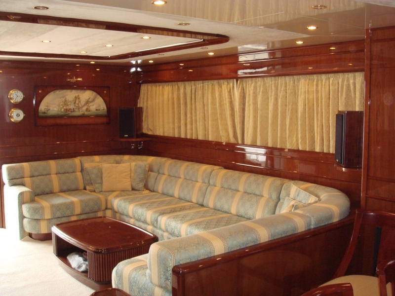 Notas internasProa doble cabina propietario + baño con ducha cabina VIP cama + baño con ducha-cabañas 2 DM invitados PLAN + 2 baños con ducha-3 plazas + tripulación X-Salón con servicio de sofás comedor área completa cocina CHERRY acabado-INTERIOR
