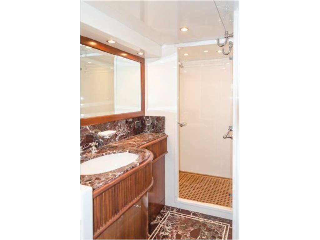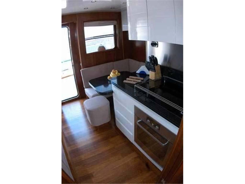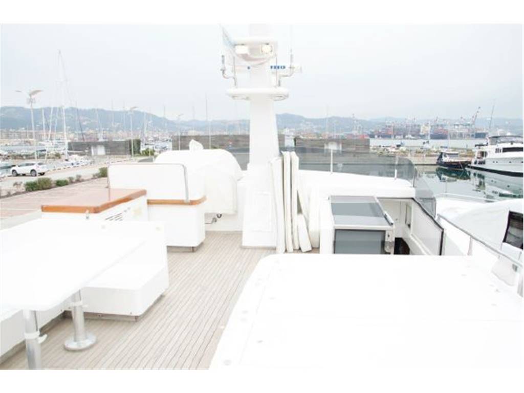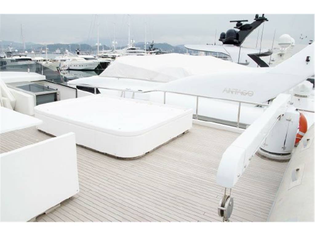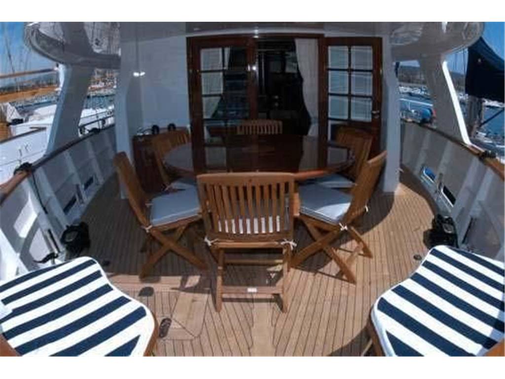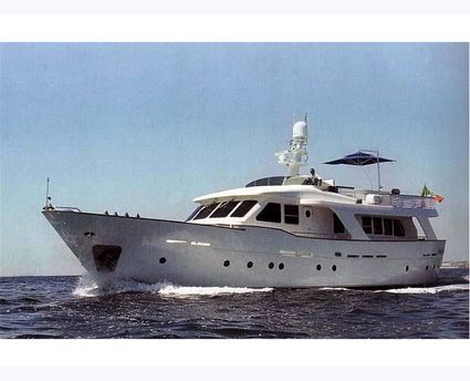 Notas internasNewly built in 2006, this 24 meter (approx. 79 foot) motor yacht has come out of the fantastic Benetti shipyard. With a steel hull, 2 x 475hp Diesel Caterpillar engines and an aluminum superstructure, the yacht cruises along at 10 knots and has a top speed of 12 knots. There are teak decks and cherry wood interiors giving the boat a classic and elegant feel. There is also a very comfortable fly deck with a table that is perfect for sunbathing. The large lounge on the main deck has a spacious and comfortable "U" shaped sofa, a dining area, a 32" LCD color TV with DVD and VCR as well as a 23" satellite ready LCD TV that has DVD and VCR. The cabins can sleep up to 8 people, all in double occupancy and most are equipped with separate beds. Sleeps 8 guest in 4 en-suite cabins. Master cabin aft with full beam cabin, double berth and spacious bathroom. Two twin berth cabin amidships and a fourth cabin with upper/lower bunks. Crew accommodation in 2 cabins for 3 persons with shared bathroom. Saloon with curved leather seating with low table opposite TV and storage cabinets. Dining forward and then a separate fully equipped galley with door to side deck. Bridge forward with full navigation equipment and chart table. Interior joinery in bleached mahogany, blue upholstery Flybridge with second helm, dining area with mini bar and BBQ. Sunbathing area on the flybridge and on the forward deck. Tender with crane stored aft. Notas de la instrumentaciónEquipmentEcho sounder,Log,Wind station,Plotter,Autopilot,Compass,GPS,VHF,Radar,Radar detector,Board computer Deck equipment Bow thruster Electric bilge pump Manual bilge pump Battery charger Air conditioning Heating Boiler Water maker Dish washer Washing machine Oven Microwave oven Fridge Freezer Electric WC Generator Inverter 220v system Teak cockpit Hydraulic gangway Table in cockpit Cockpit shower Swimming ladder Tender Life raft Electric windlass TV VHS DVD player adio with CD player Speakers in cockpit Flybridge with second helm, dining area with mini bar and BBQ. Sunbathing area on the flybridge and on the forward deck. Tender with crane stored aft. Notas de armamentoVHFPilota automatico Log - Contamiglia GPS Ripetitore(i) Lettore di DVD Altoparlanti pozzetto Ecoscandaglio Plotter TV Radar Radio Centro di Navigazione Radar Detector Lettore di CD Equipaggiamenti interni Congelatore Forno Aria condizionata Lavatrice Frigorifero Riscaldamento Microonde Pompa di sentina elettrica Caricabatterie Elica di prua WC elettrico Acqua calda Dissalatore Lavastoviglie Equipaggiamenti Elettrici Generatore Presa corrente a terra Dotazioni Esterne passavanti in teak Tavola di pozzetto Cuscineria pozzetto Autogonfiabile Pozzetto teck Doccia di pozzetto Scaletta di bagno Passerella idraulica Coperture/Tendalini Tendalino rigido |