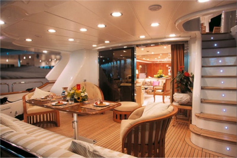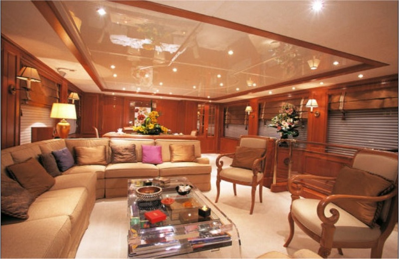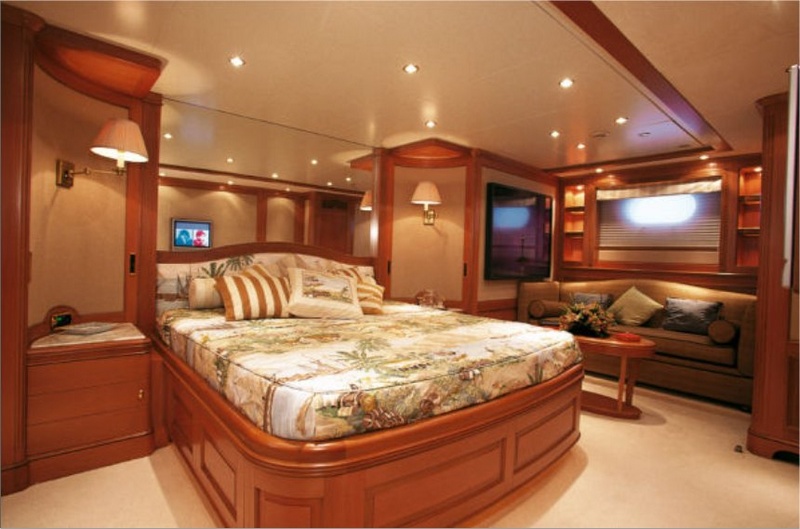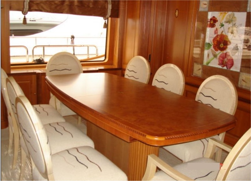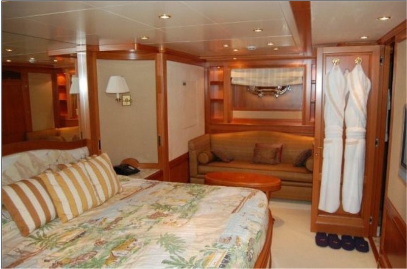 Notas internasPuente de cubierta: living comedor con sofá en forma de L, mesa y sillas, mesa móvil contrastado de comedor y sillas-cocina con encimera de inducción, dos Frigit, dos refrigeradores, congeladores, microondas horno Gaggenau miel de campana, miel, miel de residuos compactador y lavavajillas-baño-master Suite con cama doble y baño con bañera. CUBIERTA inferior: Cabina VIP con baño y walk in closet, una cabina con cama doble y cabina de baño paredes planas con dos camas y baño. Tripulación: una sola cabina y dos cabinas dobles, cada uno con su propio baño.