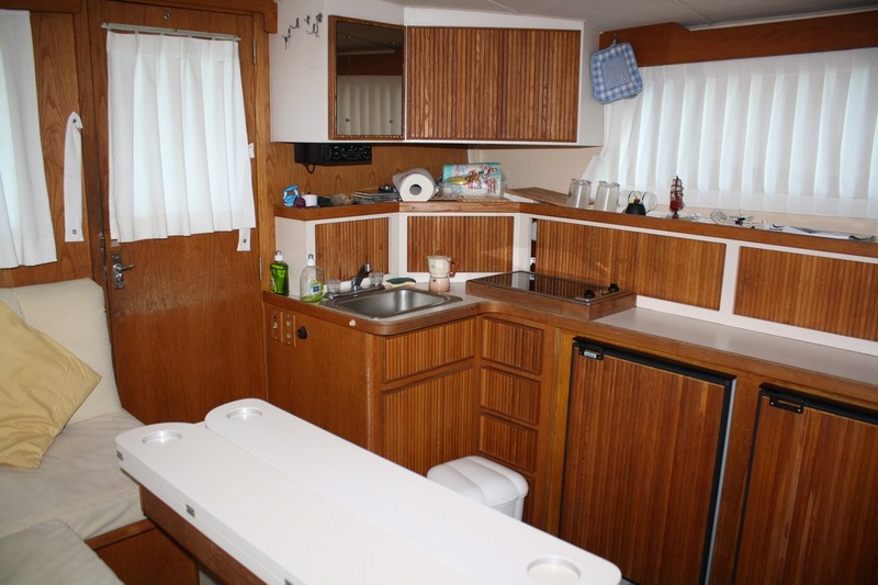 Notas internasBaño con ducha separada Comedor con sofá en forma de "L" y la mesa, la cocina se contrarrestó con dos cocina encimera vitrocerámica, dos frigorÃficos, microondas y fregadero Notas de la instrumentaciónPiloto automáticoGPS/plotter Sonda VHF Notas de armamentoGeneradorFrÃa y caliente aire acondicionado Funcionamiento de la hélice de proa Bimini top |