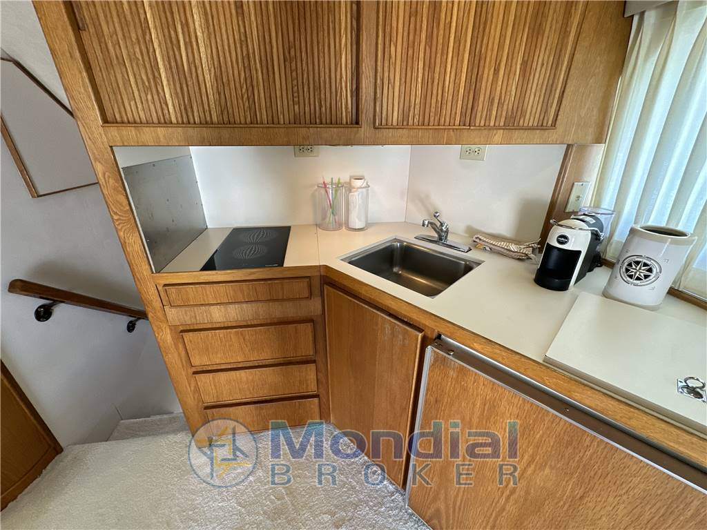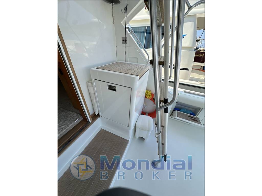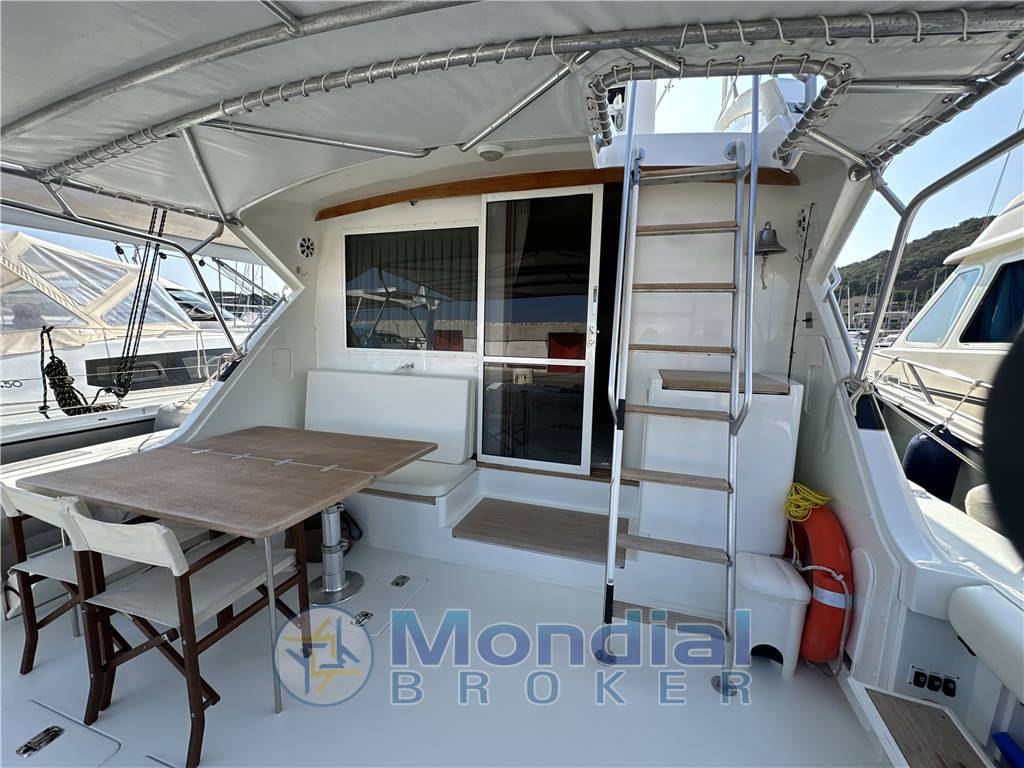 Notas internasDinette spaziosa con divano ad L con tavolo in legno, ideale per 8 persone. Dinette trasformabile in letto matrimoniale. Cucina con piastre elettriche, acquaio, frigo e forno combinato. Cabina armatoriale a pruavia con toilette dotata di box doccia. Cabina ospiti con letti singoli disposti ad L e toilette. Flybridge con 2 sedute e postazione di comando con tre lati, divano per tre persone a pruavia della consolle di guida. Notas de la instrumentaciónElica di prua, tender con motore fuoribordo, aria condizionata, forno combinato, piastre ad induzione, genratore Onan 9 Kw, frigo in cucina, frigo in pozzetto, ampio tendalino copripozzetto, t-Top in alluminio sul flybridgeNotas de armamentoElettronica SIMRAD su consolle di comando, GPS, Radar, autopilota, Stereo Simrad.Impianto completo Simrad cablato Nemea con due schermi da 9” e 12” ridondanti per ecoscandaglio, stazione meteo, pilota automatico e cartografico oltre ad un pannello dedicato al pilota automatico con angolo di barra, Vhf, antenna VHF cablata di rispetto. |