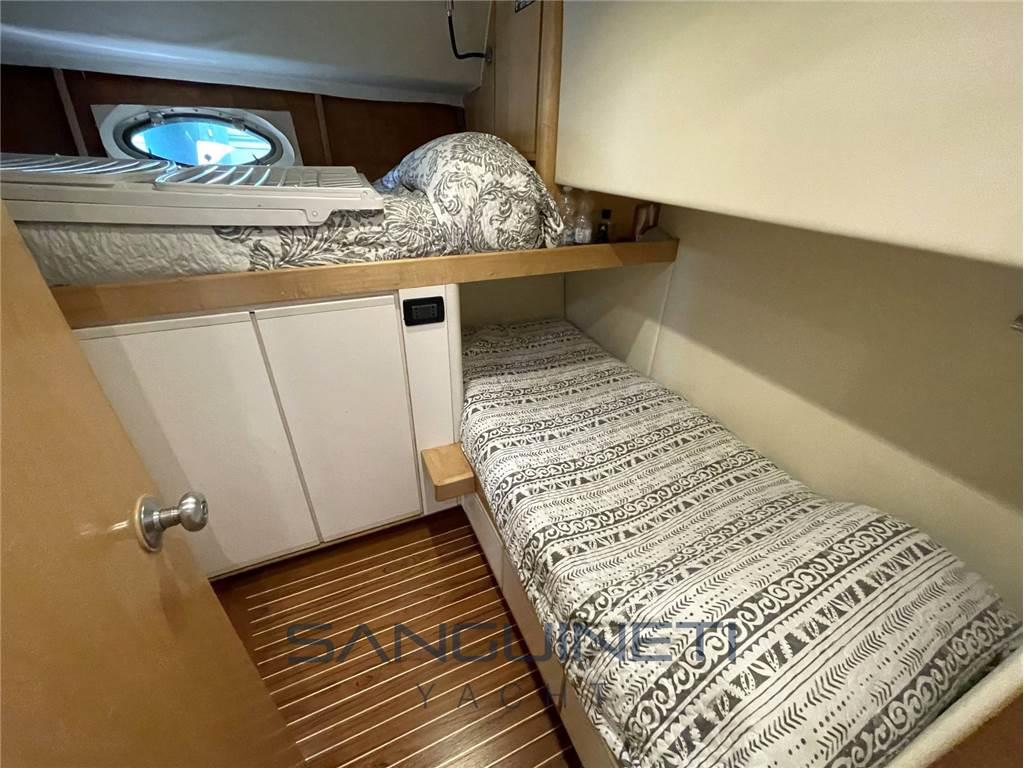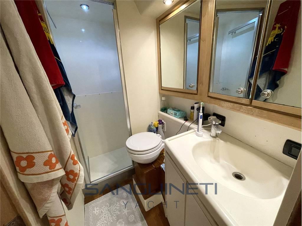 1 cabina matrimoniale a prua, 1 cabina doppia, divano trasformabile in dinette. Doppi servizi. Generatore Kohler 9 KW, aria condizionata con 3 pompe. |