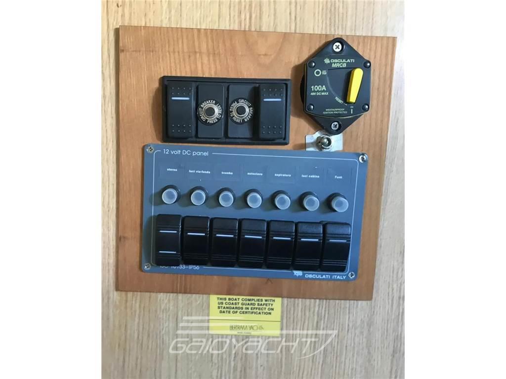 Notas internasNotas de la instrumentaciónAllarme motore, Allarme sentina, Ancora, Autoclave, Autogonfiabile, 3 Batterie, Bussola, Caricabatterie, Contamiglia, Doccia esterna, Doppia timoneria, DSC vhf, Ecoscandaglio, Fari fissi a poppa, Flap elettrici, Flap idraulici, GPS, Gruette per tender, Luci di cortesia, Passerella, Pompa di sentina automatica, Pompa di sentina elettrica, Pompa di sentina manuale, Porta ingresso, Presa 220V banchina, Presa acqua banchina, Raddrizzatore, Radio VHF, Rollbar, Salpa Ancore Elettrico, Scaletta da bagno, Tavolo pozzetto, TrombaNotas de armamentoAntenna Satellitare TV, Barometro, Binocolo, Boiler, Cassetta di pronto soccorso, Copripozzetto, Cucina, Cuscineria completa, Dotazioni di sicurezza entro 12 miglia, Fornello, Frigorifero interno, Fuochi a mano a luce rossa, Giubbetti di salvataggio, Impianto TV, Portacanne, Prendisole aggiunto, Prese interne 12v, Prese interne 220v, Radio AM/FM, Salvagente anulare con cima munita di boetta luminosa, Stereo, TV, WC marino elettrico, Zattera di salvataggio |