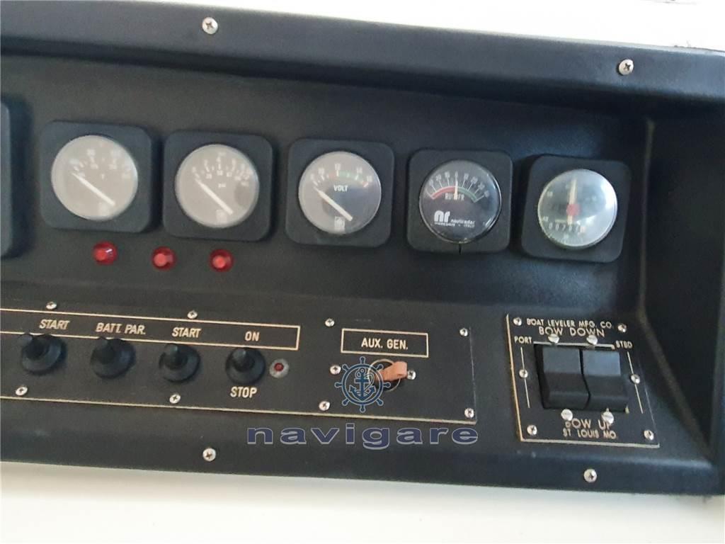 Notas internasNotas de la instrumentaciónAllarme motore, Allarme sentina, Ancora, 2 Autoclave, 3 Batterie (2020), Bussola, Ecoscandaglio (Garmin echo map 50s), Elica di prua - bow thruster (2019/2019 installazione), 2 Flap idraulici (Bennet), GPS (Geonav 6 Plus3), Luci di cortesia, Passerella, Pilota automatico (Originale dell'epoca, funzionante AP 3002 Autopilot della nautiradar Italy), Pompa di sentina elettrica, Pompa di sentina manuale, Pozzetto Teak, Presa 220V banchina, Presa acqua banchina, 2 Radio VHF (Cobra marine per il fly e fantastico SAILOR radio telefono), Salpa Ancore Elettrico, Scaletta da bagnoNotas de armamentoAria condizionata (Originale), Boiler, Cucina, Cuscineria completa (2020), Frigorifero interno (nuovo), Impianto TV, Panche abbattibili, Piastra in vetroceramica (2020), Portacanne, Prese interne 220v, Tendalino (2020), TV, WC marino elettrico |