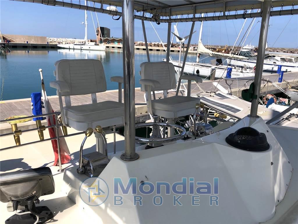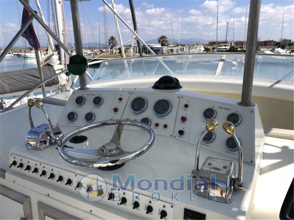Notas internasNotas de la instrumentaciónAngolo barra, 2 Bussola, Ecoscandaglio (500 mt), 2 GPS, Pilota automatico, 2 Plotter, Radio VHF.Notas de armamentoAllestimento tecnico e di coperta:Allarme motore, Allarme sentina, Doccia esterna (calda e fredda), Doppia timoneria, Fari fissi a poppa, Faro orientabile, Flap idraulici, Impianto antincendio, Luci di cortesia, 2 Luci subacquee, Passerella (idraulica), Piattaforma, Pompa di sentina automatica, Pompa di sentina elettrica, Pompa di sentina manuale, Porta ingresso, Pozzetto Teak, Presa 220V banchina, Salpa Ancore Elettrico, Scaletta da bagno, Tromba, T-Top. Dotazioni domestiche di bordo: Aria condizionata, Cassaforte, Clima reversibile, Prese interne 12v, Prese interne 220v, 2 WC marino elettrico (Tecnomar). Intrattenimento: Altoparlanti, Digitale Terrestre, Impianto TV, Stereo, TV (salone). Cucina ed elettrodomestici: Congelatore, Frigorifero interno, Macchina caffè, Piastra elettrica (vetroceramica). Tappezzerie: Teli copri finestra (patabrezza e pozzetto), Tendalino (fisso pozzetto). |