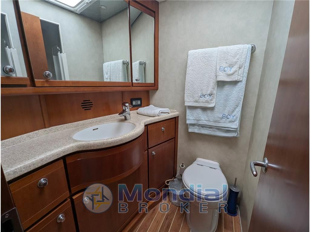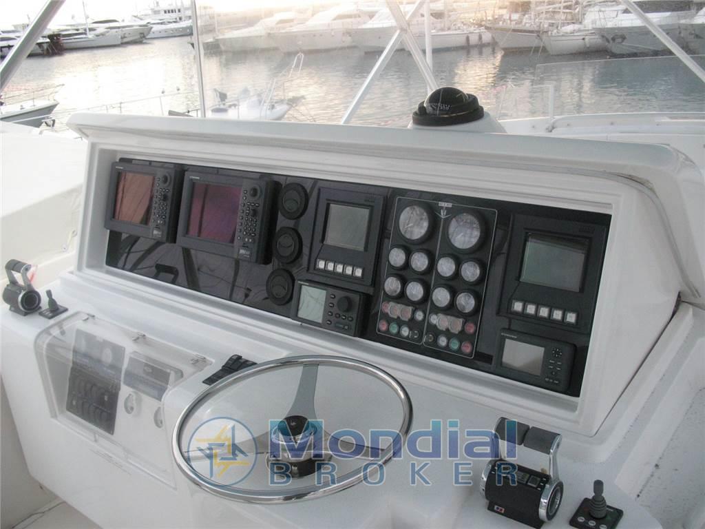 Notas de armamentoAltoparlanti, Antenna Satellitare TV, Aria condizionata (con termostato in ogni ambiente e nel fly), Boiler (bivalente), Cassaforte, Clima reversibile, Congelatore, Cucina, Cuscineria di prua, Cuscineria fly, Decoder satellite, Digitale Terrestre, Forno (a microonde), Frigorifero esterno, Frigorifero interno, Ghiacciaia, Home Theater (Bose), ICE Maker, Impianto acque nere, Impianto TV, Inverter, Microonde (combi), Pavimento interno in legno (Amtico), Piastra in vetroceramica, Portacanne, Prese interne 12v, Prese interne 220v, Radio AM/FM, Serbatoio Acque Nere, Stereo, Telecamera (in sala macchine), Teli chiusura T-Top (Nuovo 2025), Telo copriconsolle, Telo coprisedile, Tendalino (parasole pozzetto), 3 TV (Lcd), Vasca pescato, 3 WC marino elettrico, tientibene soffitto - Finestre scorrevoli al lati del salone - Finestra apribile elettricamente nel salone a poppa - Passi uomo coperta maggiorati - Tetto apribile Hard Top - Murate e soffitto hard top azzurro chiaro - bitte supplementari sul trincarino (n° 2) - Scarichi sommersi - Upgrade sedie fly - Cuscini prendisole di prua - Pavimento in Teak Amtico - Fly con divano e tavolo trasformabile in prendisole - 220-24-12V - Avvolgimento cavo banchina automatico - Elica di prua - Pompa lavaggio catena - Sollevamento idraulico del tavolo Fly - Frigoriferi - Freezer - Piastra elettrica in vetroceramica - Trolling Valve - Sistema di raffreddamento con acqua nebulizzata nel pozzetto - Sistema completo Furuno doppio display con funzioni da: GPS - VHF - Tridata - Fari sommersi - Doppi comandi elettronici - Impianto HiFi Bose - Antenna Satellitare - Lettori DVD