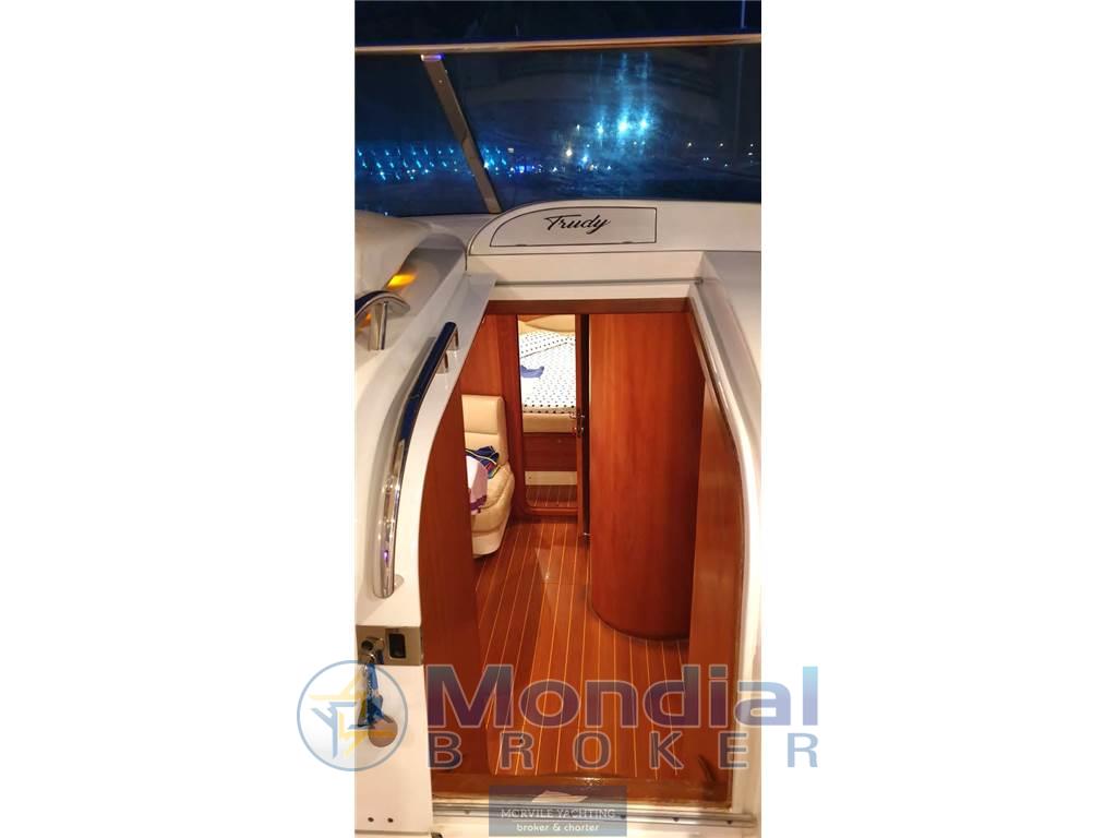 Notas internasCabine: 3 Toilette: 2 Impianto stereo Impianto TV Tv Bagni: 2 Cabine: 3 Cucina Forno Notas de la instrumentaciónImpianto elettronico- Ecoscandaglio - Impianto TV: ANTENNA TV SAT - Plotter - Pilota automatico - Radio - Bussola - Lettore CD - GPS - Altoparlanti di pozzetto - VHF Pilota automatico Comandi flaps Contamiglia Ecoscandaglio GPS GPS-Plotter Log Vhf Notas de armamentoCoperture/Tendalini- Tendalino rigido: SUN TOP RIGIDO - Tendalino pozzetto Equipaggiamenti Elettrici - Presa corrente a terra - Generatore: 4 KW Equipaggiamenti interni - Elica di prua - Pompa di sentina elettrica - Forno - Pompa di sentina manuale - Microonde - WC marino - Aria condizionata - WC elettrico - Riscaldamento - Acqua calda - Frigorifero - Caricabatterie Dotazioni Esterne - Pozzetto in teak - Doccia pozzetto - Passerella idraulica - Cuscineria pozzetto - Tavolo pozzetto - Scaletta bagno Cuscineria Frigorifero esterno Scaletta: 1 Tavolo nel pozzetto |