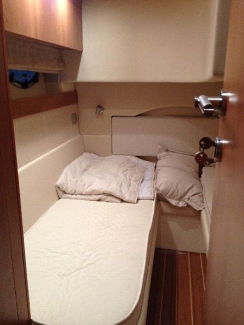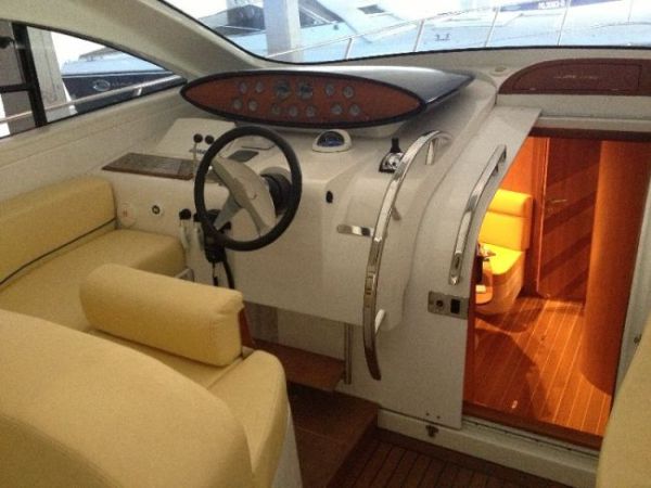 Notas de armamentoREVESTIMIENTO de pared interna DINETTE y cocina en madera con laca de MATT acabado sol cojines para proa y popa ducha WC en AFT puente arco con escala de baño de los titulares de Copa retráctil arco exterior comedor y garaje para bote de MT 2.40 Apertura de compartimiento eléctrico tierna y MOTOR cubierta HARD TOP con hidráulico lado QUEMACOCOS de vidrio templado y estratificada por 8 MM duros ventanas del lado superiores del limpiador exterior al aire libre cocina lavabo cerámica inodoros eléctricos "VACUN FLUSH" microondas bien y tablón de teca sólida de 8 MM iluminación, marca el paso en cualquier local e iluminación exterior en la cabina popa tres grupos de baterÃas: Derecho motor arranca, el motor en marcha, servicios (compuesta de 6V 4 baterÃas en paralelo para descarga lenta) colector eléctrico baterÃas carga pelada apagado con comando desde el comedor con externo enchufe cargador 220 V eléctrico cable MT 10 GENERAL PANEL de CONTROL eléctrico 12V/220V sistema de agua caliente para atacar el agua directa de la cabina de popa de carga plataforma arco cadena lavado ducha ducha y tablón de teca de AFT