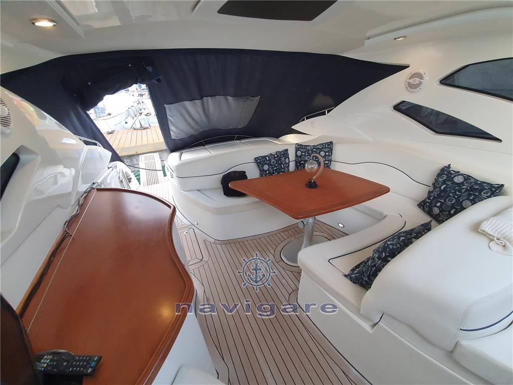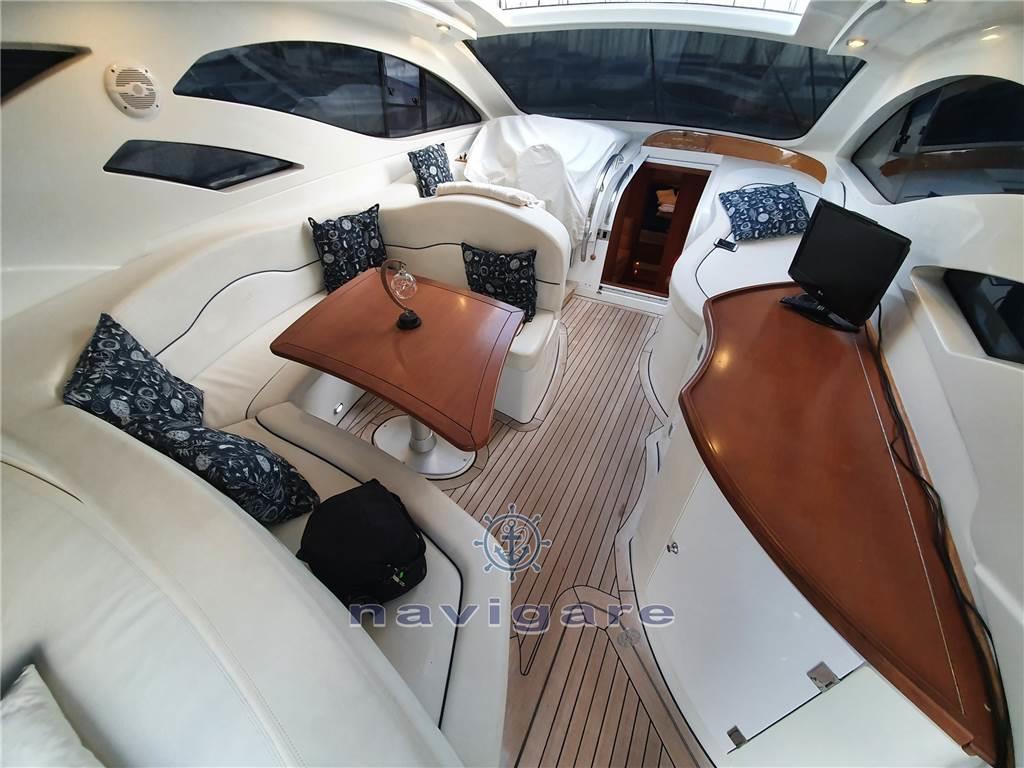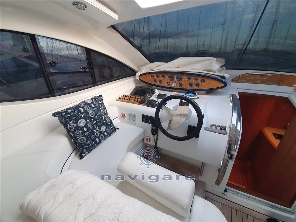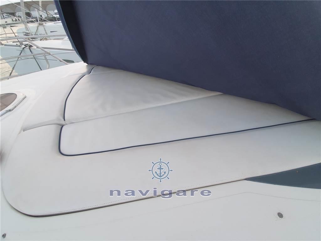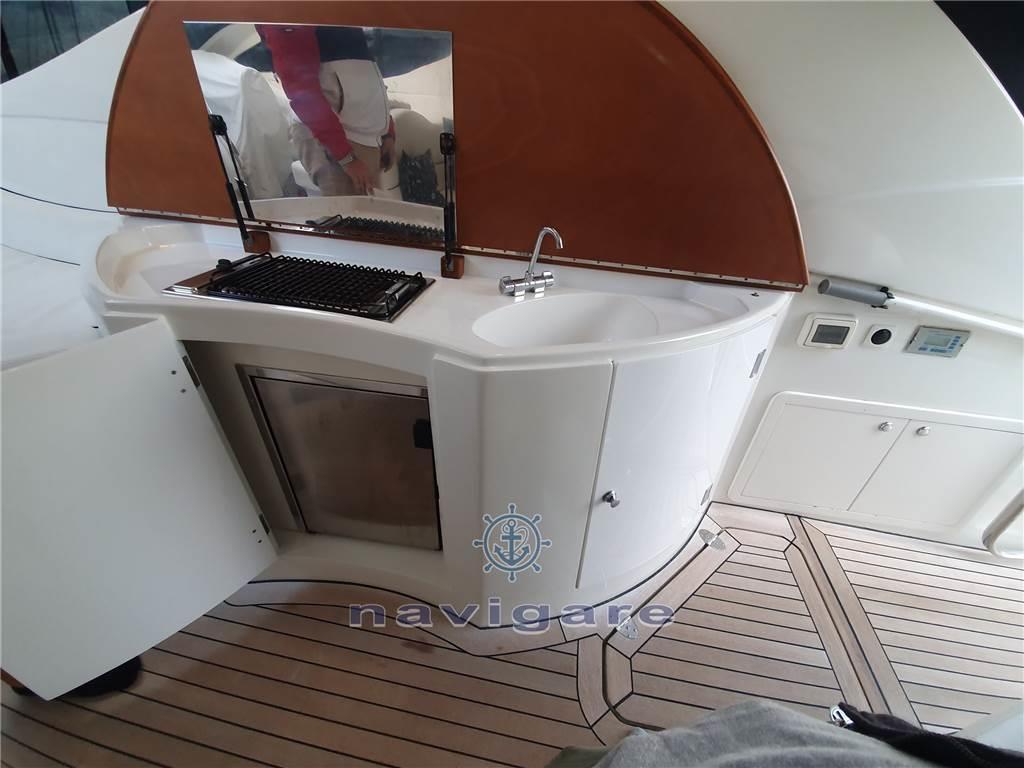 Notas de armamentoAria condizionata (calda e fredda), BBQ/ Grill (esterno), Boiler (50 LT), Cappottina, Copripozzetto, Cucina, Cuscineria di poppa, Cuscineria di prua, Cuscineria Pozzetto, Frigorifero esterno, Frigorifero interno, Giubbetti di salvataggio, Impianto acque nere, Impianto TV, Microonde, Oscuranti (2022), Piastra elettrica, Prese interne 12v, Prese interne 220v, Radio AM/FM, Serbatoio Acque Nere, Stereo, Teli copri finestra, Telo copriconsolle, Tendalino, 3 TV, 2 WC marino elettrico, Zattera di salvataggio, Sotto coperta sono stati installati degli oblò di grandi dimensioni che, oltre a rendere accattivante il profilo esterno dell’imbarcazione, danno notevole luminosità alla dinette e alla cucina. Gli interni sono nella versione a due cabine. Il bagno, la cucina e la dinette dell’armatore sono di dimensioni più generose con un’altezza in cabina di oltre 2 metri. I mobili interni, di nuovo design, conferiscono all’imbarcazione un’impostazione più moderna, sempre con la massima attenzione al razionale utilizzo degli spazi e al confort di bordo.