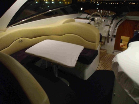 Notas internasGran salón con un sofá y comedor, mesa de madera, cocina equipada con refrigerador, horno y vitrocerámica. CD sistema estéreo, TV, televisor Lcd, aire acondicionado caliente y frÃo. Notas de la instrumentaciónVHF, gps, profundidad sounder, brújula, registro, ángulo del timón,Notas de armamentoProa propulsor, Molinete eléctrico, alerones eléctricos, pasillo hidráulico retráctil, bombas de sentina eléctricos y manuales, tanque de agua, tierna m. 2.10 con motor 4 hp, |