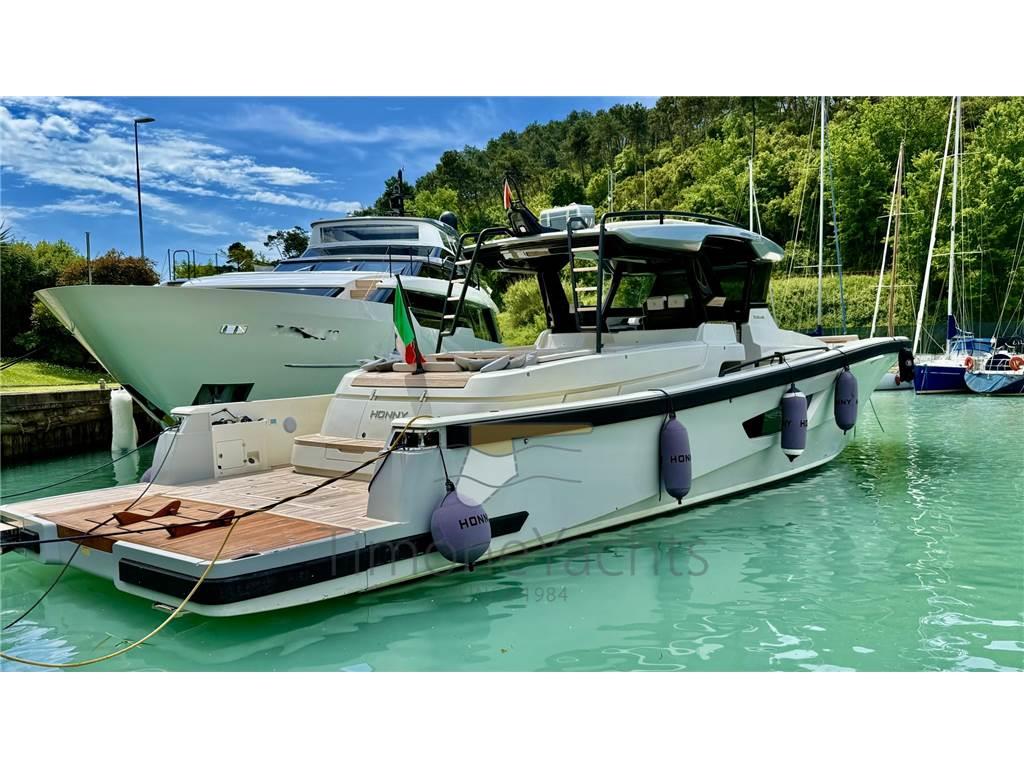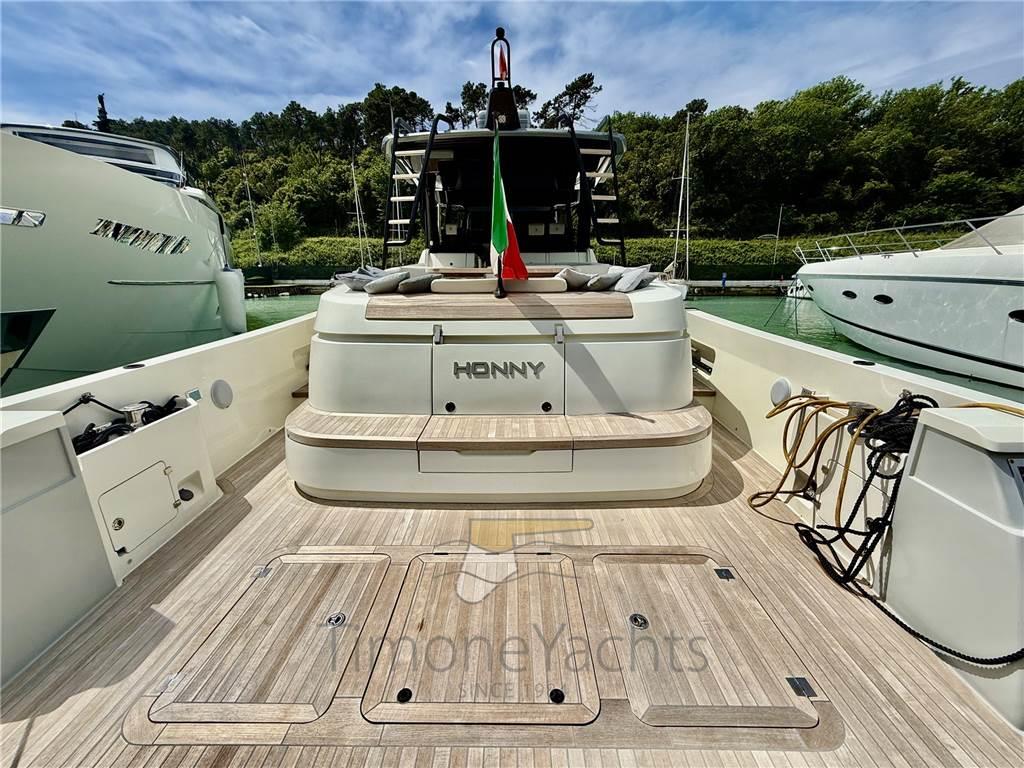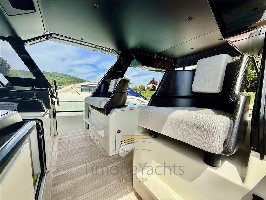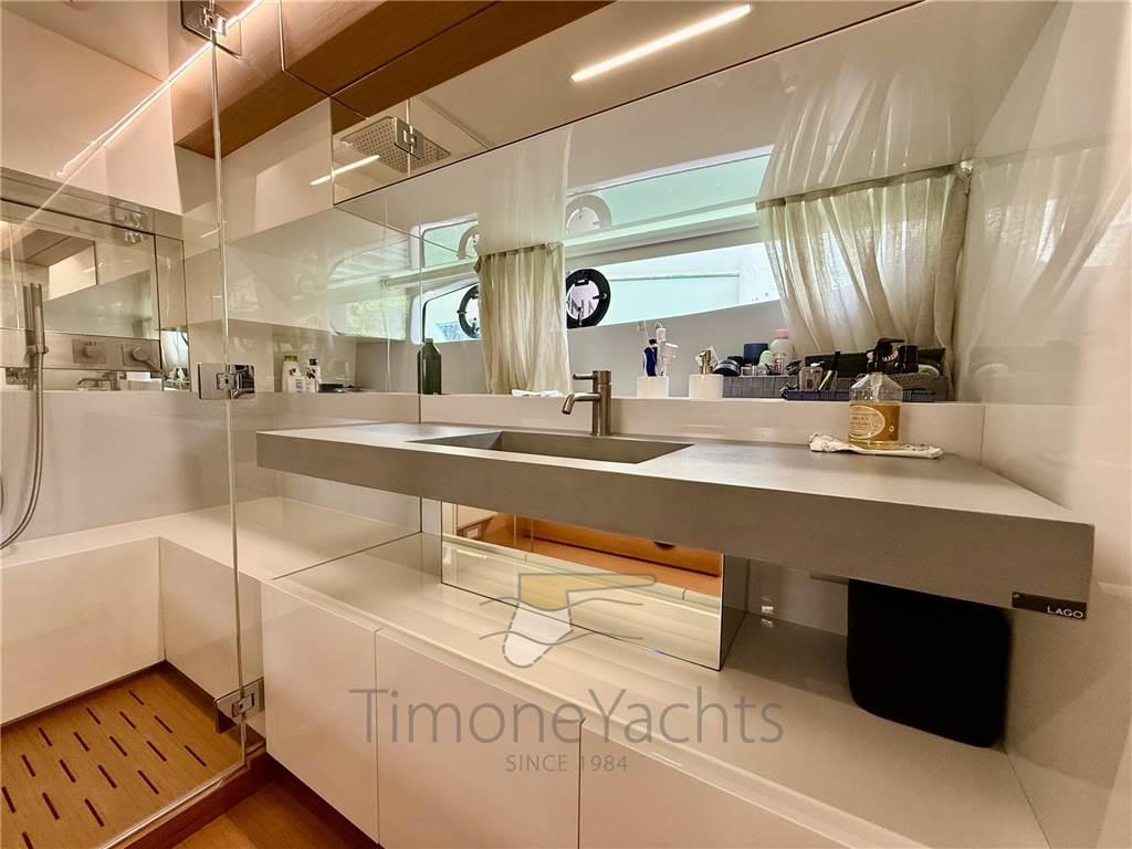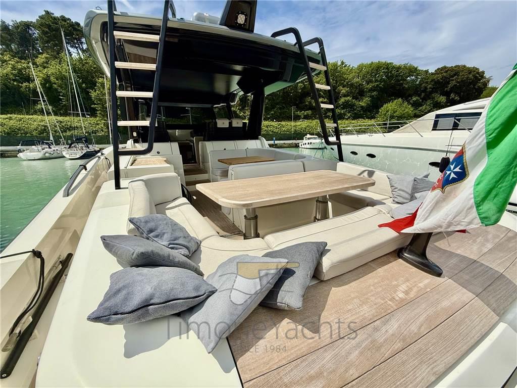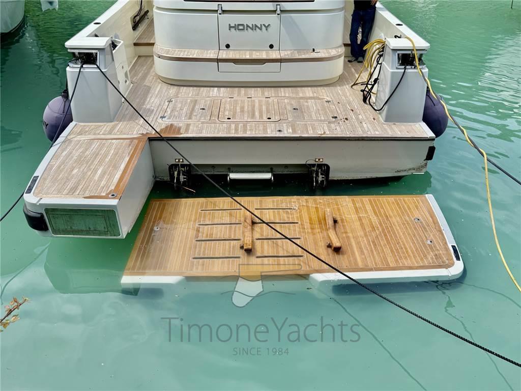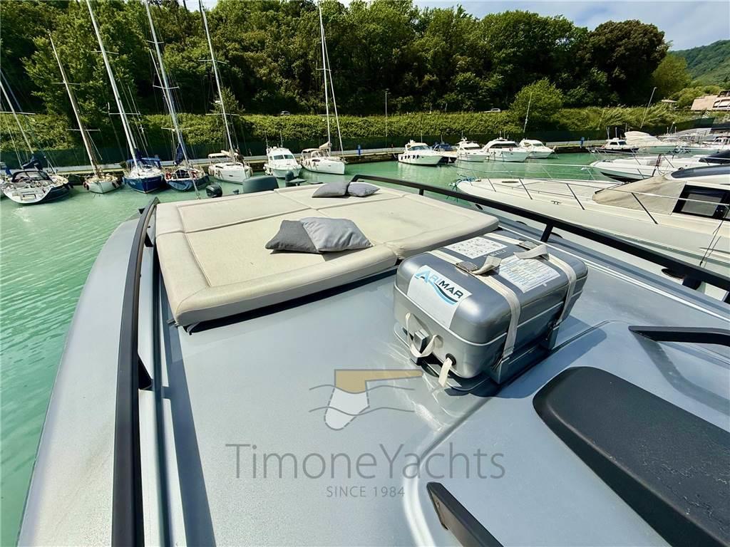 Notas de armamentoAltoparlanti, Antenna Satellitare TV, Aria condizionata, BBQ/ Grill, Boiler, Clima reversibile, Congelatore, Copripozzetto, Cucina, Cuscineria completa, Cuscineria di poppa, Cuscineria di prua, Cuscineria fly, Cuscineria Pozzetto, Dissalatore (130 l h), Forno, Frigorifero esterno, Frigorifero interno, ICE Maker, Impianto acque nere, Impianto TV, Inverter, Lavasciuga, Lavastoviglie, Macchina caffè, Microonde, Oscuranti, Pavimento interno in legno, Piastra in vetroceramica, Prese interne 12v, Prese interne 220v, Radio AM/FM, Riscaldamento, Serbatoio Acque Nere, 3 Telecamera, Telo copriconsolle, Telo coprisedile, Tendalino, 3 TV, WC marino elettrico
