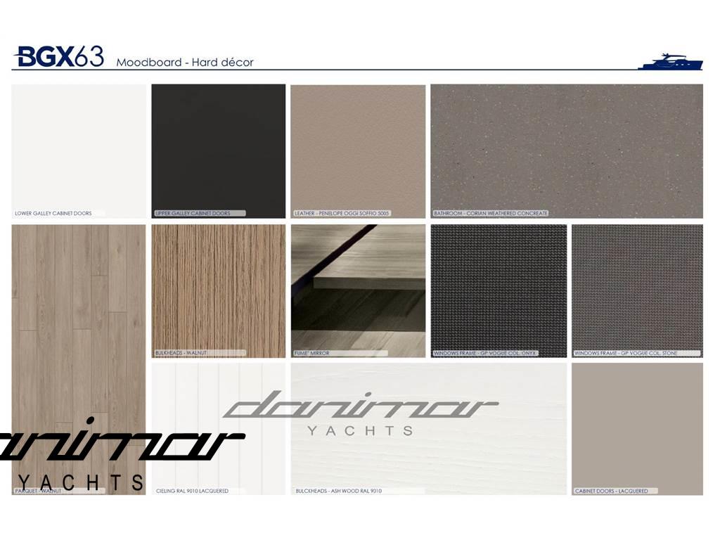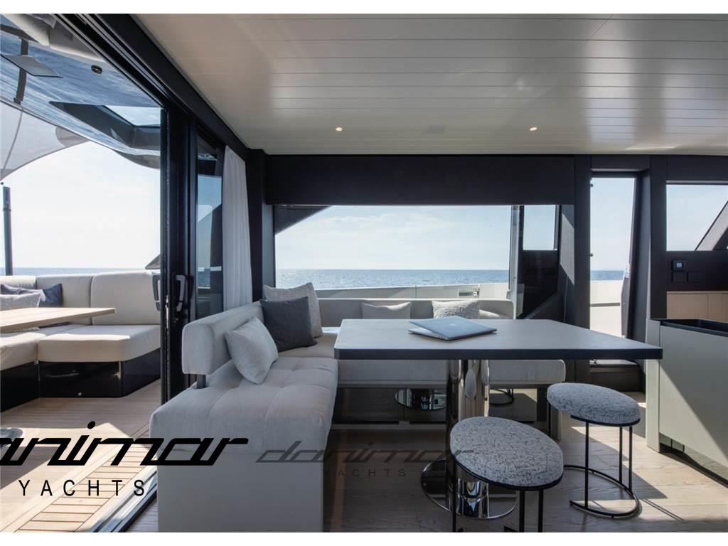 Tappezzerie: 2 Bimini (at foredeck and private aft terrace), Cuscineria di prua, Prendisole aggiunto.