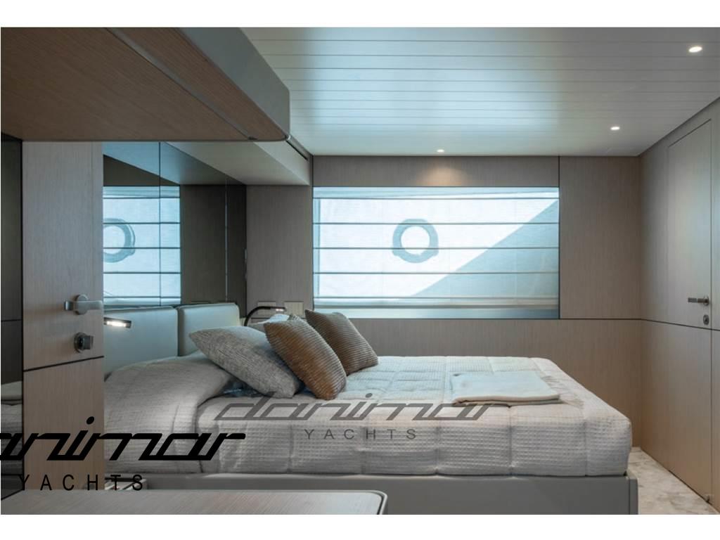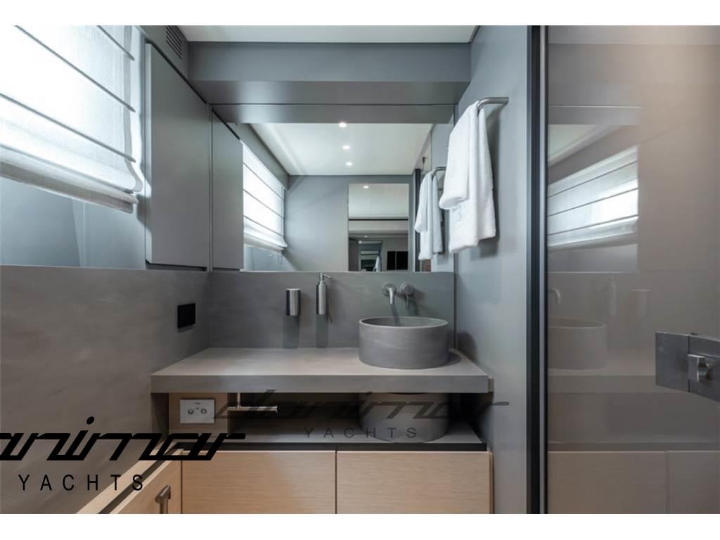 Notas de armamentoAllestimento tecnico e di coperta: Allarme motore, Allarme sentina, Ancora, Apertura Vano Motore Elettrica, Auto Dynamic Trim Interceptor, Auto-Trim, 2 Bitte Abbattibili, Bocche di Lupa, Camminamenti laterali in teak, Doccia esterna, Elica di prua - bow thruster, Fari fissi a poppa, Faro orientabile, Gruette, Hard top, Impianto antincendio, Lavaggio catena, Lavandino nel Pozzetto, Luci di cortesia, Luci subacquee, Passerella (Pantograph), Piattaforma, Pompa di sentina automatica, 3 Porta ingresso, Porta laterale, Pozzetto Teak, Presa 220V banchina, Salpa Ancore Elettrico, Scaletta da bagno (Pantograph), Stabilizzatori (gyro), Tavolo pozzetto (Private terrace in upper deck), Tromba, 2 Winch tonneggio di poppa, Winch tonneggio di prua.