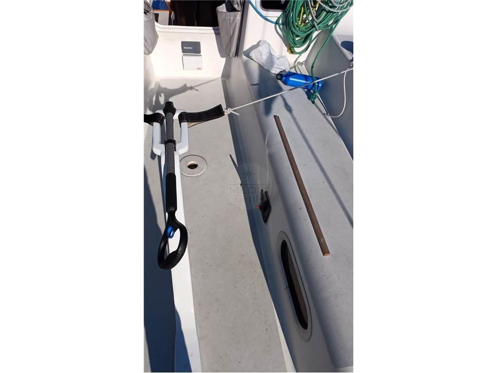 Notas internasNotas de la instrumentaciónBussola, Ecoscandaglio, Log, Radio VHF.Notas de armamentoAllestimento tecnico e di coperta:Ancora, Winch. Cucina ed elettrodomestici: Fornello (Gas), Frigorifero interno (Electric). Vele: Randa, Tormentina, Fiocco, Avvolgi Fiocco. |