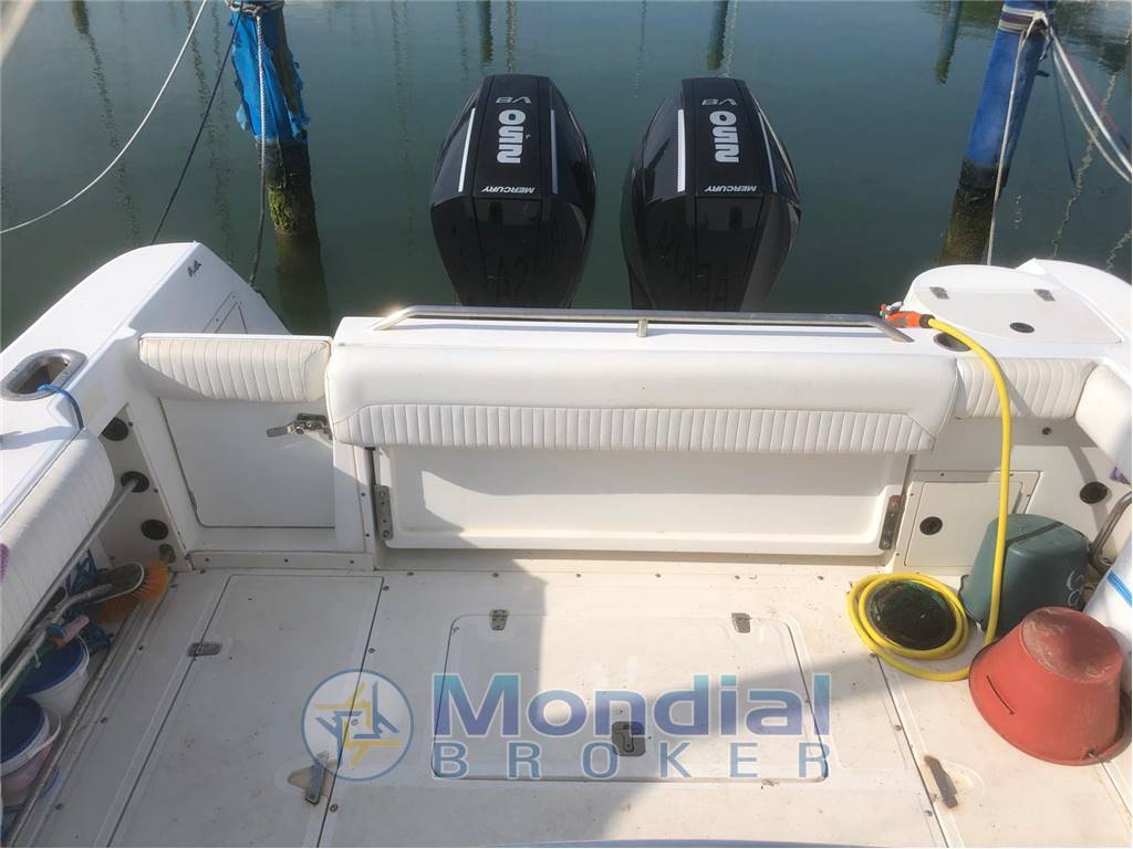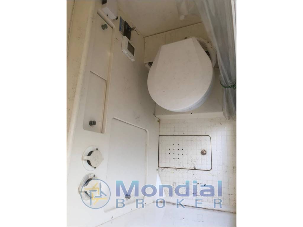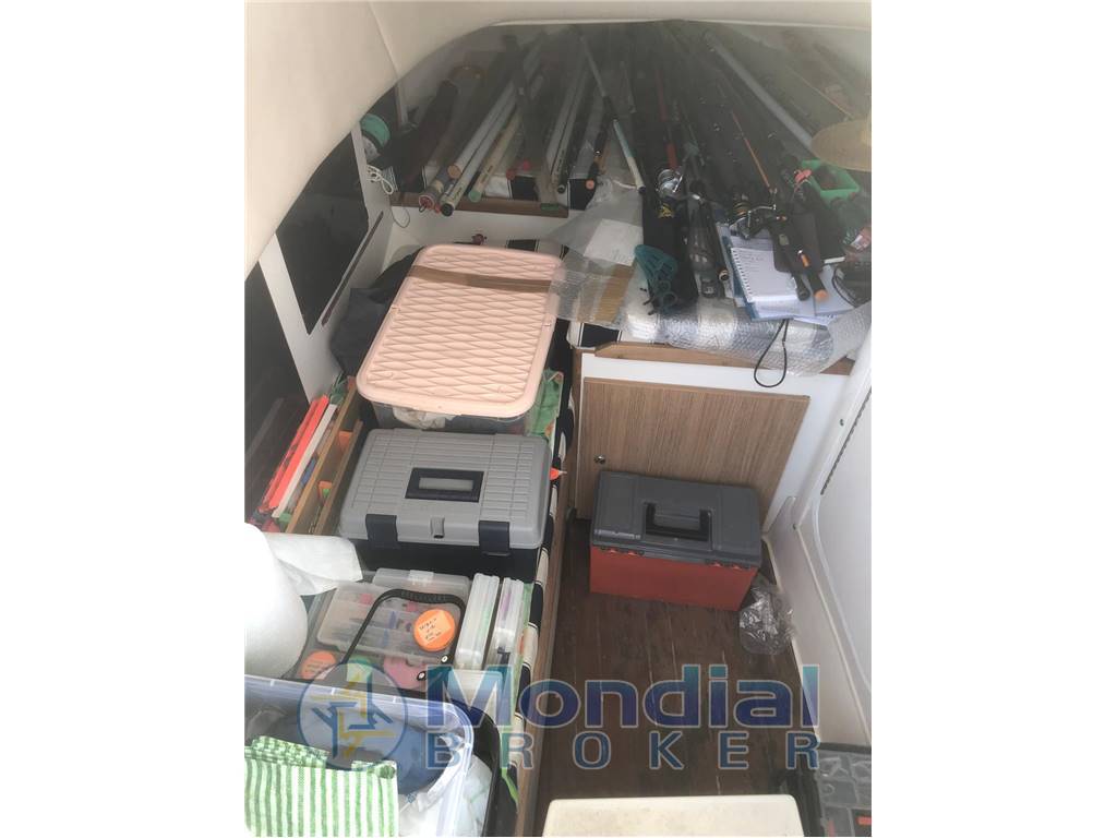 Notas de armamento• Cabina con tre posti letto, locale WC separato, con doccia • Vasca di raccolta delle acque nere. • Serbatoio acqua dolce da 200 litri, con pompa autoclave con pressostato. • Flaps • Due batterie per alimentazione dei servizi di bordo ed apparecchiature elettroniche. • Serbatoi carburante n° 2 ciascuno da 550 litri • Motore elettrico di prua MINN Kota da 112 libbre con gambo lungo, equipaggiato da due batterie al litio da 100 AH cadauna da 36 volts • Elettronica di bordo: Raymarine Axiom 9 + Axiom 7 – Modulo chirp CP 470 – Trasduttore passante da 1 KW + trasduttore a scarpetta – Radar Raymarine • Pannello solare sul T-Top • T-Top con box per la radio di bordo, 4 portacanne a riposo, due fari illuminazione pozzetto. • Luci a LED di cortesia per illuminazione pozzetto • N° 3 pompe di sentina (automatiche/manuali) • N° 2 vasche del pescato con relativa pompa di svuotamento • Vasca del vivo con relativa pompa acqua di mare. • Impianto di lavaggio coperta con pompa acqua di mare al alta portata, munita di pressostato • Impianto di lavaggio con doccetta acqua dolce in locale WC, Specchio di poppa e lavello zona preparazione esche. • Elica di prua con relative due batterie di alimentazione. • Chiusura totale area di pilotaggio con teli in PVC. • NB: scafo in perfette condizioni .. eseguita lucidatura opera morta, e revisione della carena con trattamento epossidico, nella primavere di quest’anno • Barca immatricolata, con revisione RINA effettuata in maggio di quest’anno, valida per 5 anni |