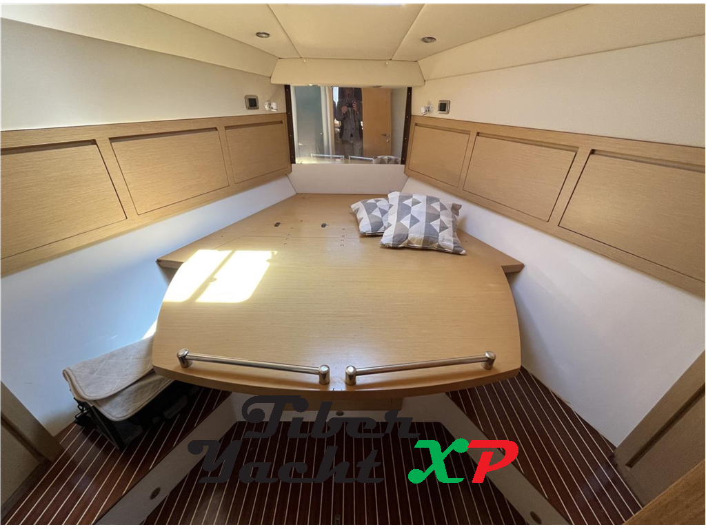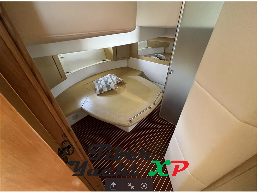 Notas internasZona prodiera centrale completa di strumentazione. Scendendo sotto coperta, troviamo una dirette con divano a "L" , di fronte ce un secondo divano che chiudendo la porta scorrevole si trasforma nella cabina ospiti letti a castello. A Prua è situata la cabina VIP, servita da armadio e cassettiere. La Toilette ospiti è completa di doccia. A centro barca troviamo la cabina armatoriale con letto matrimoniale e toilette separata con box doccia. LA cabina è dotata di armadi e cassettiere. Notas de la instrumentación1°GPS Plotter Garmin CMap 10”2° GPS Plotter Garmin Touch screen 9” Radar Garmin Interfacciato Autopilota Simrad VHF Icom IC323 Conta catena Quick M1202 Elica di Prua Bussola Faro Orientabile Manette Elettroniche Strumentazione EVC Volvo Penta digitale interfacciata Notas de armamentoTV LCD,Ancora e catena, Apertura Vano Motore Elettrica, Aria condizionata, Autoclave, Batterie, BBQ/ Grill, Cappottina chiusura, Caricabatterie, Computer di bordo, Cuscineria completa nuova, Elica di prua, Flap idraulici, Forno, Frigorifero esterno, Frigorifero interno, Passerella idraulica, Pavimento interno in legno, Piattaforma bagno, Pilota automatico Plotter con antenna GPS Pozzetto Teak, Radar Garmin, Radio VHF ICOM, Winch tonneggio di poppa, |