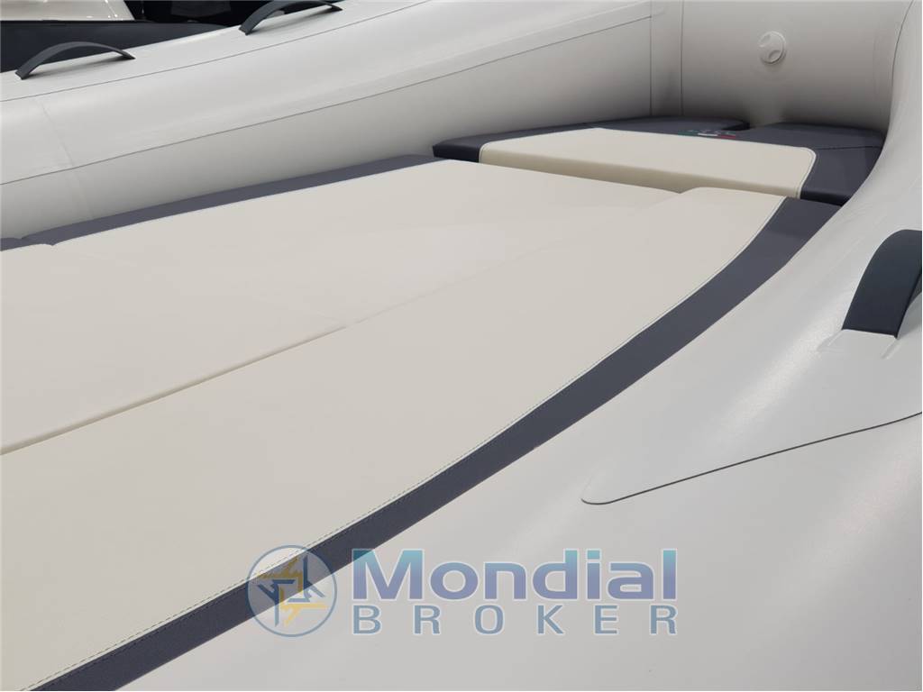 Notas internasLunghezza f.t.: 5,71 mt - Larghezza f.t.: 2,45 mt Peso a secco: 520 kg Portata persone: 10 Max motorizzazione: 145 CV – 107 kW Categoria di progettazione CE: C Diametro tubolari: 56 cm - Compartimenti tubolari: n. 5 Descrizione: Bellissimo gommone 57 «Classic edition» progettato per uso ricreativo famigliare. La console di nuova concezione presenta linee morbide in armonia con il design della barca e la seduta di guida consente di poter guidare sia da seduti che in piedi, oppure si può abbassare così da poter prolungare il prendisole di poppa. Notas de la instrumentaciónDotazioni: Delfiniera di prua, timoneria meccanica, gavoni di prua e prendisole, cuscineria completa a cellula chiusa, console completa, sedile fronte console, schienale di poppa ribaltabile, plancette a poppa, ganci di traino, serbatoio acqua, pompa di sentina, pannello elettrico, impianto elettrico completo, gonfiatore, scaletta di risalita, kit di riparazioneOptional: Serbatoio carburante, timoneria idraulica, Roll Bar in acciaio inox con tendalino nero, luci per Roll bar e tromba, doccia, luci console, telo ormeggio, telo copri console, rivestimento sintetico, gonfiatore elettrico, Fishfinder. Notas de armamentoPrezzo: € 21.500,00+ iva (prezzo listino: € 25.400,00 + iva)PACKAGE CON MOTORE: SUZUKI DF40 ARI: 27.500,00 € + iva: 33.550,00 € SUZUKI DF 100 B: 31.000,00 € + iva: 37.820,00 € *quotazione spese trasporto su richiesta. Listino10-2024- Il listino si intende illustrativo, non costituisce documento contrattuale, il cantiere si riserva il diritto di apportare modifiche in ogni momento. |