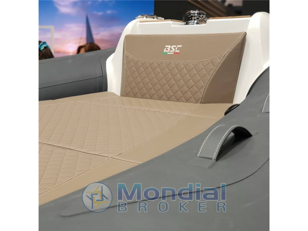 Notas internasCantiere e modello: BSC 62 EBONY Lunghezza f.t.: 6,25 mt - Larghezza f.t.: 2,90 mt Peso a secco: 630 kg Portata persone: 12 Max motorizzazione: 175 CV – 129 kW Categoria di progettazione CE: C Diametro tubolari: 58 cm - Compartimenti tubolari: n. 5 Descrizione: Elegante e con preziose finiture si presenta questa versione di lusso EBONY (ebano). Armonioso aspetto dei tubolari con morbide finiture soft touch, cuscineria De Luxe e volante in pelle. Layout con ampi spazi di prendisole prua e di poppa adatti ad ospitare fino a 12 persone. Confortevole divanetto di poppa corredato di avvolgente poggiaschiena con struttura a doppio tubolare. Offerta speciale comprende accessori preziosi e di alta qualitá quali il rollbar interamente in acciaio con tendalino sole, luci rollbar e tromba. Notas de la instrumentaciónDotazioni standard: ROLLBAR IN ACCIAIO CON TENDALINO SUNBRELLA TAUPE – SERIE LUCI ROLLBAR E TROMBA. Tubolare anthracite soft touch-morbido al tatto, cuscineria elegance, volante in pelle con razze inox lucide, chiglia nera, cruscotto verniciato, pannello interruttori inox, manigliette tubolare con cuciture a vista, portelli in finitura teak, molle gas portelli inox, 4 bitte versione elegance BSC, Delfiniera, gavoni di prua e prendisole, console completa, sedile console e schienale di poppa con comodo poggiaschiena, prolunga prendisole di poppa, tavolo a ribalta, plancette a poppa, ganci di traino, serbatoio acqua, serbatoio carburante 110 lt, indicatore livello carburante, blower, pompa di sentina, pannello elettrico, impianto elettrico, stacca batteria, presa USB in console, gonfiatore, scaletta di risalita, kit riparazione.Optionals: verricello elettrico, timoneria idraulica, prolunga di prua, telo copri console, telo completo, Teak, doccia, luci di cortesia, gonfiatore elettrico, Stereo. Notas de armamentoPrezzo: € 34.500,00 + iva (prezzo listino: € 44.190,00 + iva)PACKAGE CON MOTORE: MERCURY F40 EFI ELPT PRO: 41.000,00 € + iva: 50.020,00 € SUZUKI DF 100 B: 44.300,00 € + iva: 54.046,00 € SUZUKI DF 115 B: 45.500,00 € + iva: 55.510,00 € *Listino 10-2024. Il listino si intende illustrativo, noncostituisce documento contrattuale, il cantiere si riserva il diritto di apportare modifiche in ogni momento. |