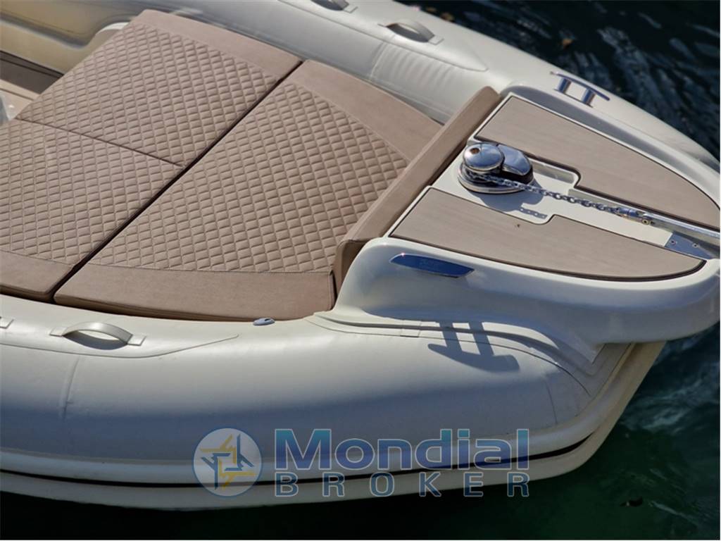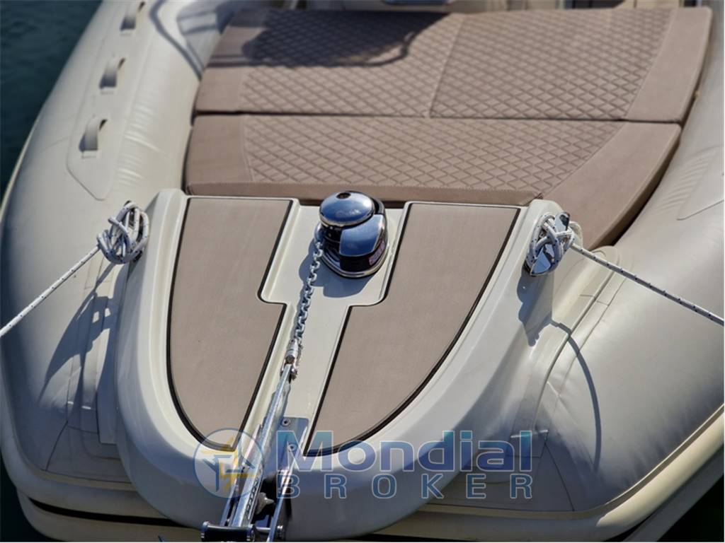 Notas internasvolante in pelle con razze inox lucide, cruscotto console metallizzato, pannello interruttori inox, manigliette tubolare con cuciture a vista, portelli in finitura teak, molle gas portelli inox, 4 bitte versione elegance BSC, Delfiniera, gavoni di prua e prendisole, console completa, sedile console e schienale di poppa con comodo poggiaschiena, prolunga prendisole di poppa, tavolo di poppa / prendisole di poppa, plancette a poppa, ganci di traino, serbatoio acqua, serbatoio carburante 140 lt, blower, pompa di sentina, pannello elettrico, impianto elettrico, stacca batteria, presa USB in console, gonfiatore, scaletta di risalita, kit riparazione. Notas de la instrumentaciónOptionals incl: rollbar in acciaio con tendalino (Sunbrella), luci LED rollbar in inox, tromba, teli copriconsolle, coprisedile, coprischienale poppa, verricello elettrico, impianto doccia, Stereo RAYMARINE RMX2 (4 altoparlanti 100W+USB+Bluetooth), rivestimento Reflex pavimento, telo coprigommone, ecoscandaglio Lowrance.Notas de armamentoCOPERTA GELCOAT AVORIO – CHIGLIA NERA – TUBOLARE COLOR AVORIO – CUSCINERIA ELEGANCE COLOR TAUPERollbar in acciaio inox con tendalino Sunbrella e tromba, Verricello elettrico, Stereo Raymarine,impianto doccia Serie luci Rollbar e Tromba, Teli copertura etc. |