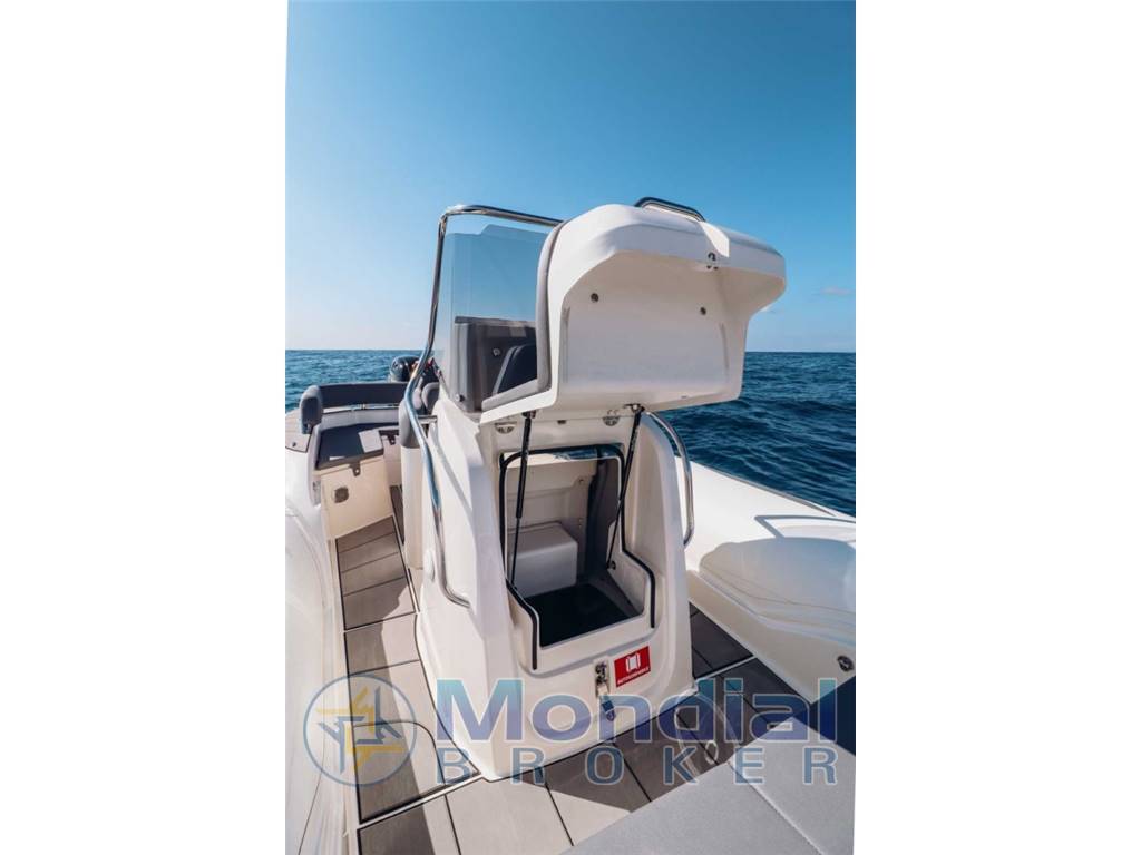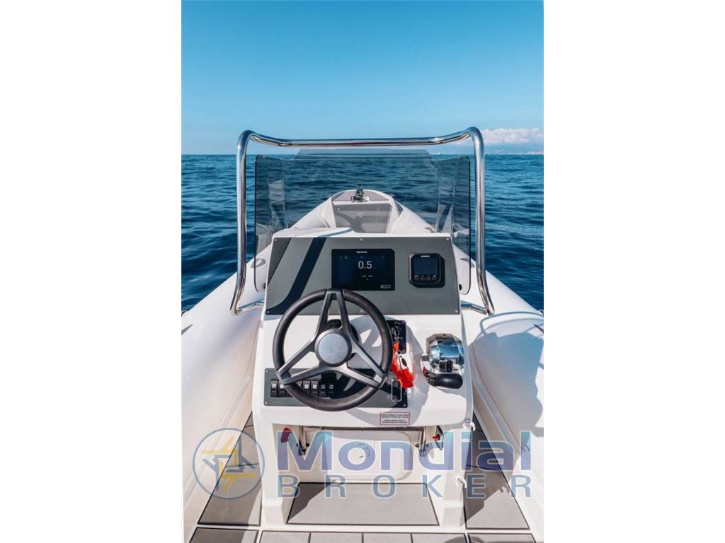Notas internasConsole completa con timoneria meccanica, cuscineria completa a cellula chiusa, sedile fronte console, schienale di poppa, prolunga prendisole di poppa, tavolo a ribalta, tavolo di poppa / Prendisole di poppa, plancette a poppa, gavoni di prua e prendisole, ganci di traino e ormeggio, serbatoio acqua, serbatoio carburante inox da 190 litri, pompa di sentina, blower, pannello elettrico, impianto elettrico completo, stacca batteria, presa USB in console, gonfiatore manuale, scaletta di risalita e kit di riparazione tubolari. |