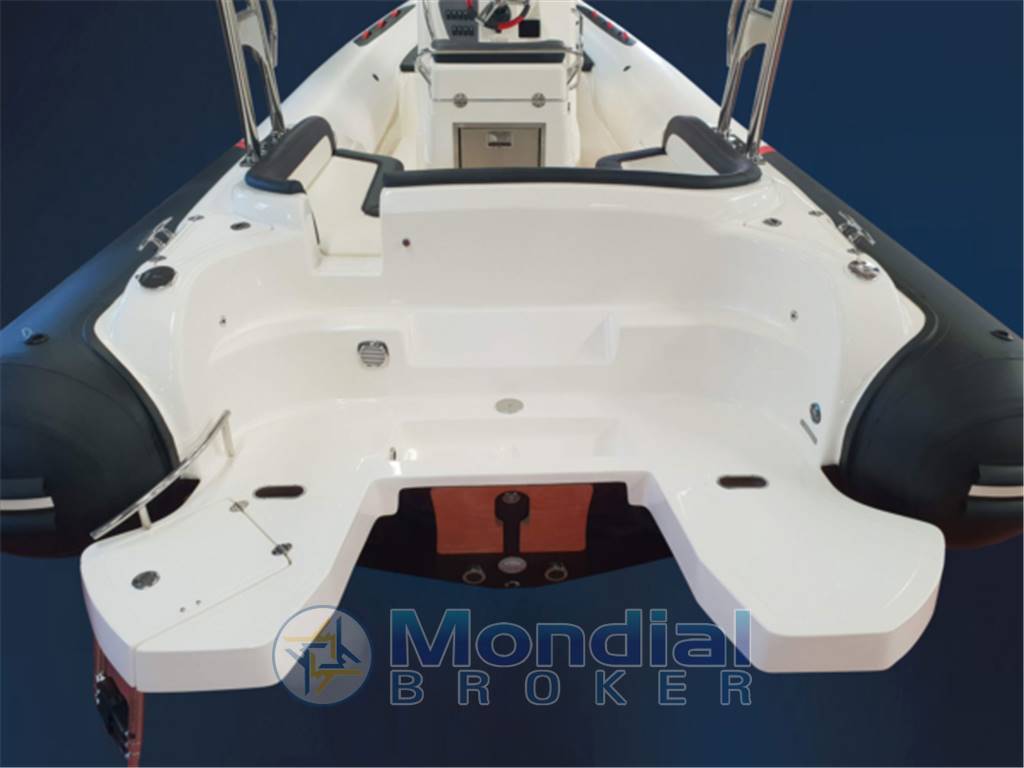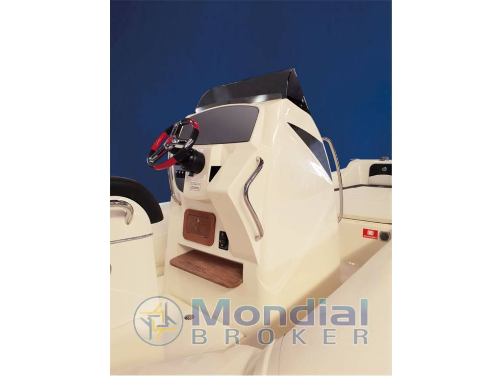 Notas internasConsole completa con timoneria meccanica, cuscineria completa a cellula chiusa, sedile fronte console, poggiapiedi console, schienale di poppa, tavolo di poppa / Prendisole di poppa, plancette a poppa, ganci di traino e ormeggio, serbatoio acqua, doccia a poppa completa di impianto, serbatoio carburante inox, blower, pompa di sentina automatica, pannello elettrico, impianto elettrico completo, stacca batteria, presa USB in console, gonfiatore elettrico, scaletta, kit di riparazione tubolari, volante in pelle con razze inox lucide, cruscotto console metallizzato, pannello con interruttori inox, maniglie sul tubolare con cuciture a mano, portelli in finitura teak, molle a gas in acciaio inox su portelli, 4 bitte in acciaio disegno BSC, tubolare materiale ORCA personalizzabile colori: anthracite, army grey, military green, ivory, off-white, carbon, anthracite carbon, cuscineria più alta con finitura trapuntata Silvertex colore a scelta: beige, champagne, taupe, mandarin, red, green army, titanium. |