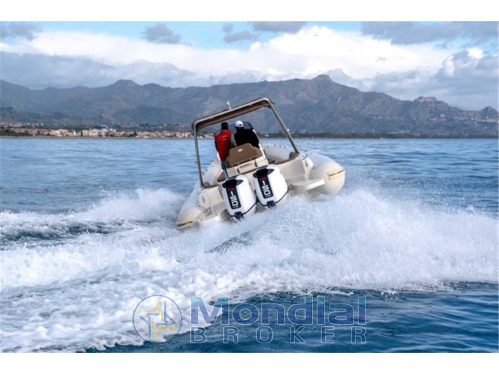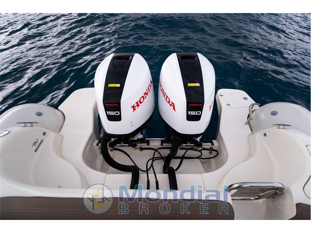 Notas internasConsole completa con timoneria meccanica, cuscineria completa a cellula chiusa, cruscotto console, sedile fronte console, schienale di poppa, tavolo di poppa, poggiapiedi console in teak, prolunga prendisole di poppa, gavoni di prua e prendisole, gavoncini per cime ormeggio poppa, gavone pavimento per riporre il tavolo, ganci di traino e ormeggio, plancette a poppa, delfiniera di prua, serbatoio acqua, indicatore livello acque chiare, doccia poppa completa di impianto, serbatoio carburante inox 400 litri, blower, pompa di sentina automatica, pannello elettrico, impianto elettrico completo, stacca batteria, presa USB in console, bussola, frigorifero elettrico, gonfiatore elettrico, scaletta, kit di riparazione tubolari, tromba. Cabina: WC elettrico, presa corrente 12 Volt, doccia in cabina, specchio, lavandino, carabottino teak, illuminazione. |