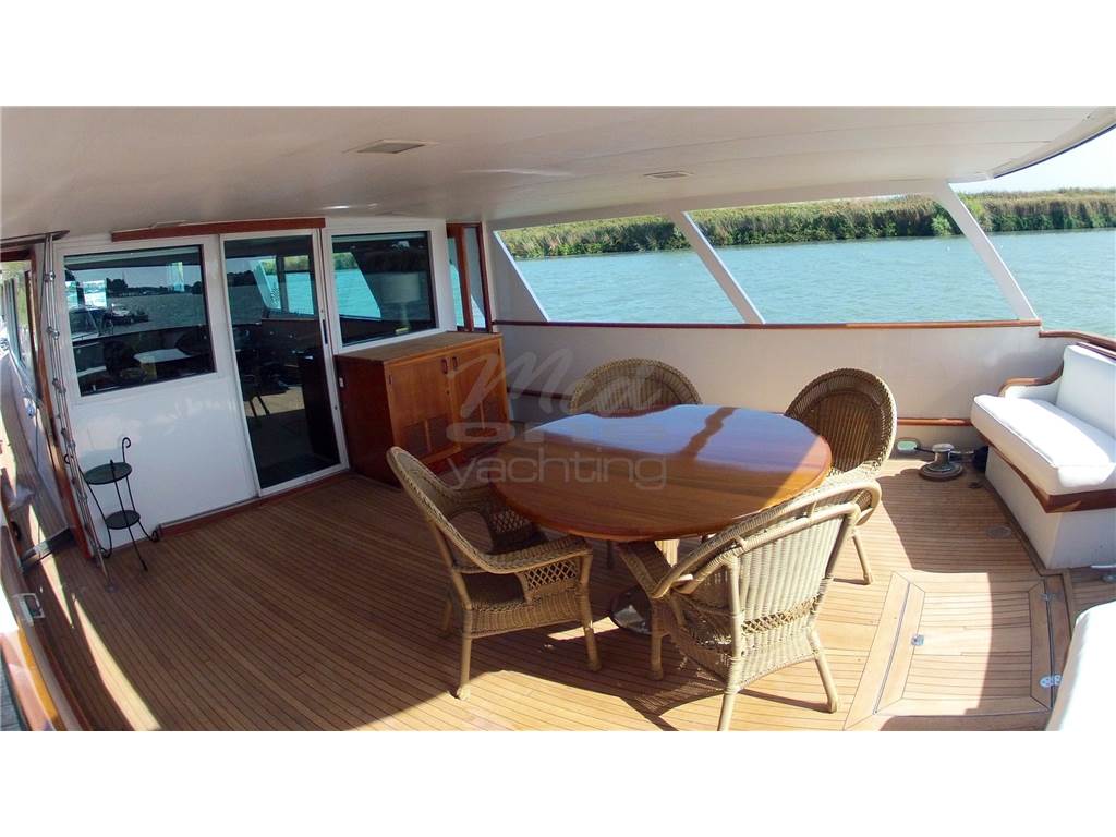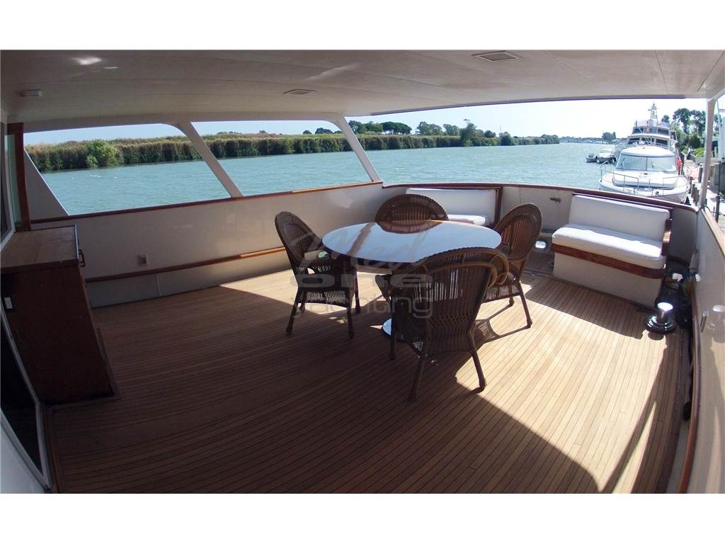 Notas internasNotas de la instrumentaciónAngolo barra, 2 Antenna radar (Simrad + Furuno), 2 Bussola, Computer di bordo (Simrad), Contametri catena, Contamiglia, Display, Ecoscandaglio (Simrad), Fax, FaxGSM, GPS, Interfono, Log, Pilota automatico, Plotter con antenna GPS, Radar, 2 Radio VHF (Cobra), Sonar (Piooner dual scan), SSB, Stazione vento, Telefono GSM, Telefono satellitare, Yacht controller.Notas de armamentoAllestimento tecnico e di coperta:Allarme gas, Allarme motore, Allarme sentina, Ancora, Asse di rispetto, 3 Autoclave, 2 Autogonfiabile, Camminamenti laterali in teak, Canvas Wing, 3 Caricabatterie, Doccia esterna, Elica di poppa - stern thruster, Elica di prua - bow thruster, Faro orientabile, 4 Gruette per tender su fly, Impianto antincendio, Impianto Aria Compressa, Lavaggio catena, 2 Luci subacquee, 2 Moto d'acqua, Passerella (Idraulica in fase di realizzo), Piattaforma, 8 Pompa di sentina automatica, Pompa di sentina elettrica (220v azionamento manuale), Porta ingresso, 2 Porta laterale, Pozzetto Teak, 5 Presa 220V banchina, Presa acqua banchina, Raddrizzatore, Salpa Ancore Elettrico (3550 vatt), 2 Scala reale, Scaletta da bagno, Stabilizzatori, 2 Tender, Tromba, 2 Winch tonneggio di poppa, Winch tonneggio di prua. Dotazioni domestiche di bordo: Aria condizionata, 5 Cassaforte, Clima reversibile, Collegamento internet, Impianto acque nere, Prese interne 12v, Prese interne 220v, 5 WC marino elettrico. Dotazioni di sicurezza: Barometro, Binocolo, Boetta fumogena, Carte nautiche, Cassetta di pronto soccorso, Cinture di salvataggio, Dotazioni di sicurezza oltre 50 miglia, E.P.I.R.B., Fuochi a mano a luce rossa, Giubbetti di salvataggio, Razzi a paracadute a luce rossa, Riflettore Radar, Salvagente anulare con cima munita di boetta luminosa, Strumenti da carteggio, 2 Zattera di salvataggio. Intrattenimento: Altoparlanti, Antenna Satellitare TV, Decoder satellite, Digitale Terrestre, DVD, Home Theater, Impianto TV, Personal computer, Ricevitore satellitare, TV. Cucina ed elettrodomestici: Asciugatrice, Congelatore, Cucina, Forno, Frigorifero interno, 2 ICE Maker, Lavastoviglie, Lavatrice, Macchina caffè, Microonde, Piastra in vetroceramica. Tappezzerie: Bimini, Copripozzetto, Cuscineria completa, Cuscineria di poppa, Cuscineria di prua, Cuscineria Pozzetto, Teli copri finestra, Telo coprisedile. |