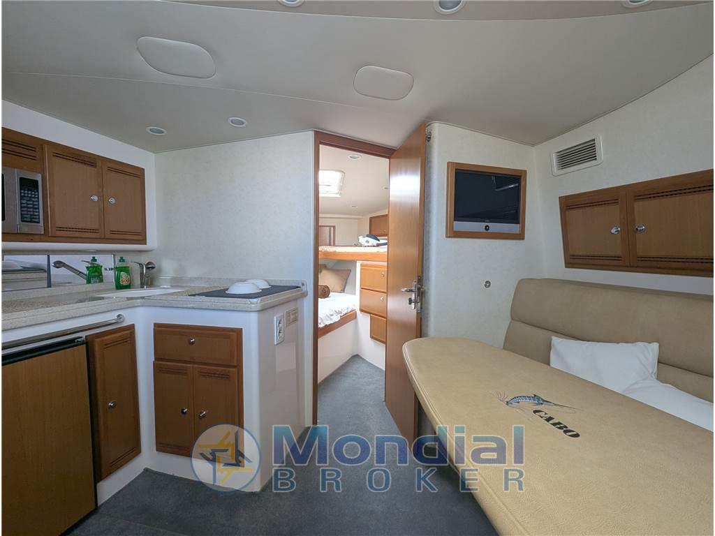 Notas internas1 Toilette con doccia, 1 Cucina, 1 Matrimoniale a V di prua, 1 Dinette Trasformabile Il Cabo 38 Express offre interni curati e funzionali, ideali per la crociera e la pesca sportiva. Dispone di una cabina matrimoniale a V di prua che assicura comfort e relax, una dinette trasformabile per ottimizzare gli spazi, una cucina attrezzata per ogni esigenza e una toilette completa di doccia. Il layout intelligente unisce praticità e vivibilità, rendendo ogni uscita in mare comoda e piacevole.