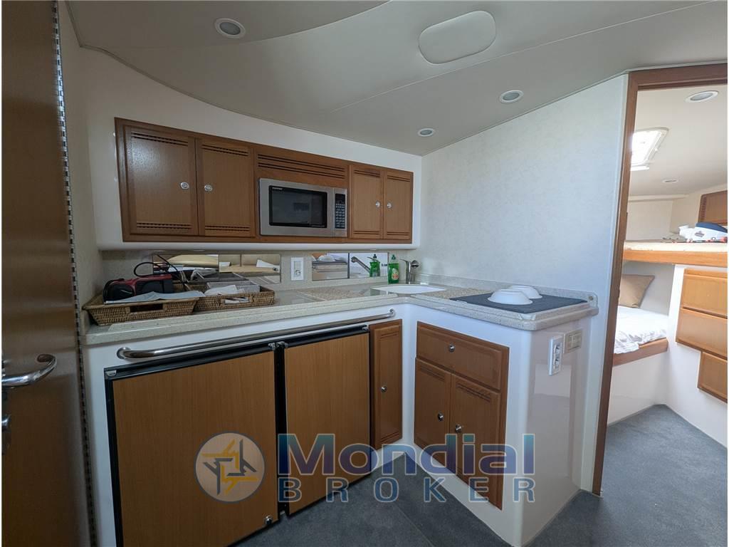 Notas de armamentoAltoparlanti, Aria condizionata, Boiler, Clima reversibile, Congelatore, Cucina, Digitale Terrestre, Impianto acque nere, Impianto TV, Microonde, Pavimento interno in legno, Piastra in vetroceramica, Portacanne, Prese interne 12v, Prese interne 220v, Radio AM/FM, Serbatoio Acque Nere, Stereo, Teli chiusura T-Top, Tuna tower, TV, Vasca del vivo, 2 Vasca pescato (1 con refrigerazione), WC marino elettrico