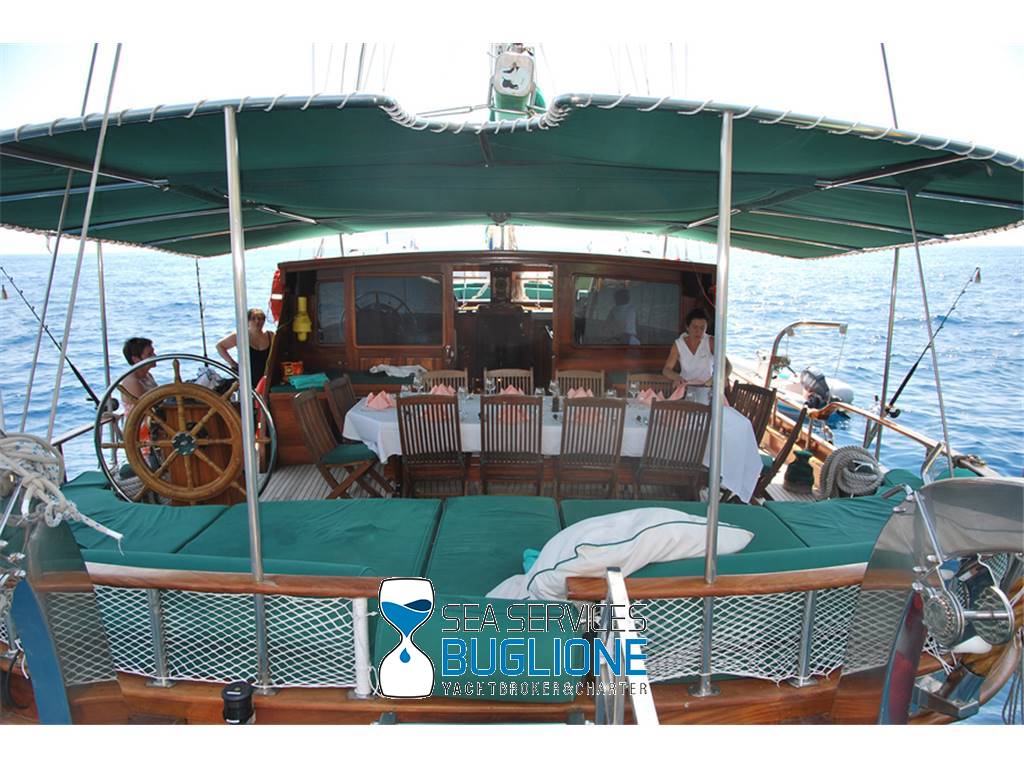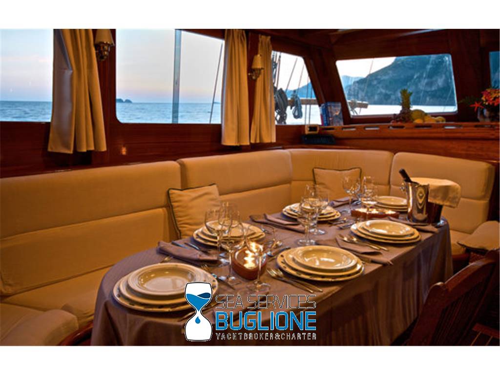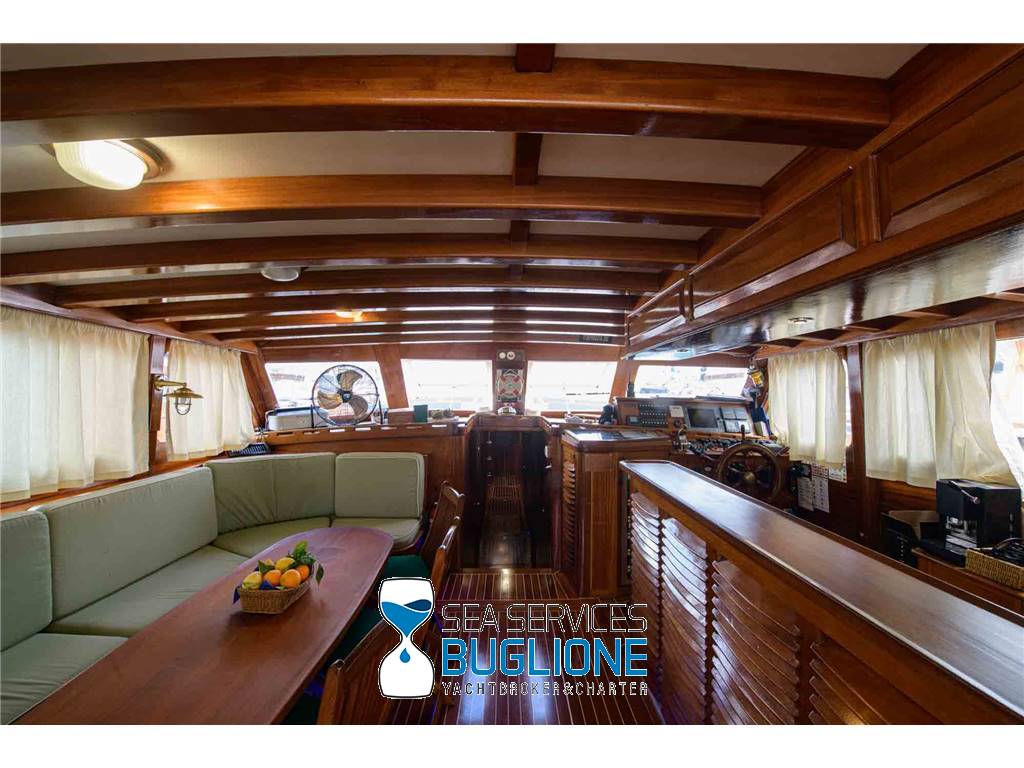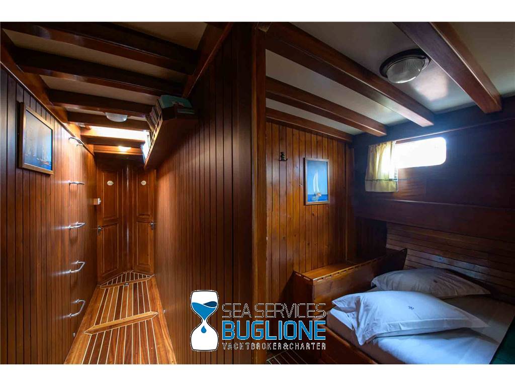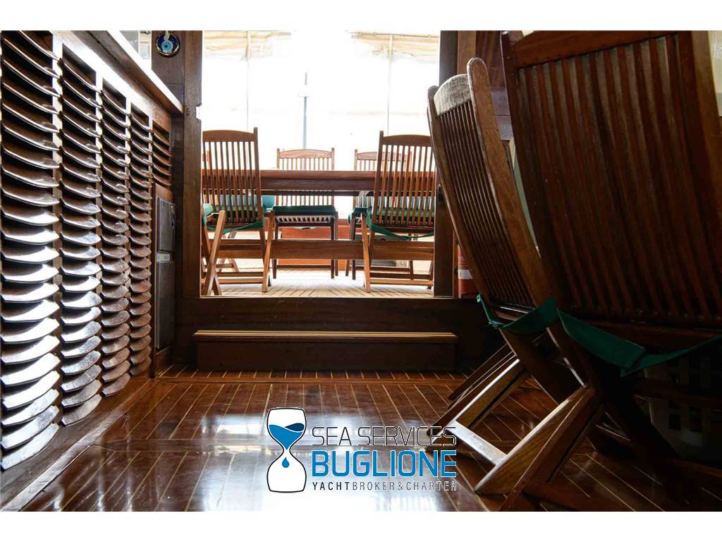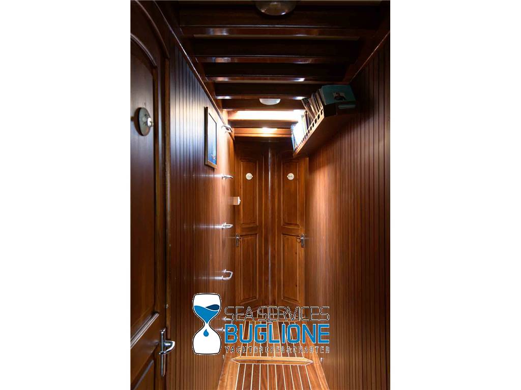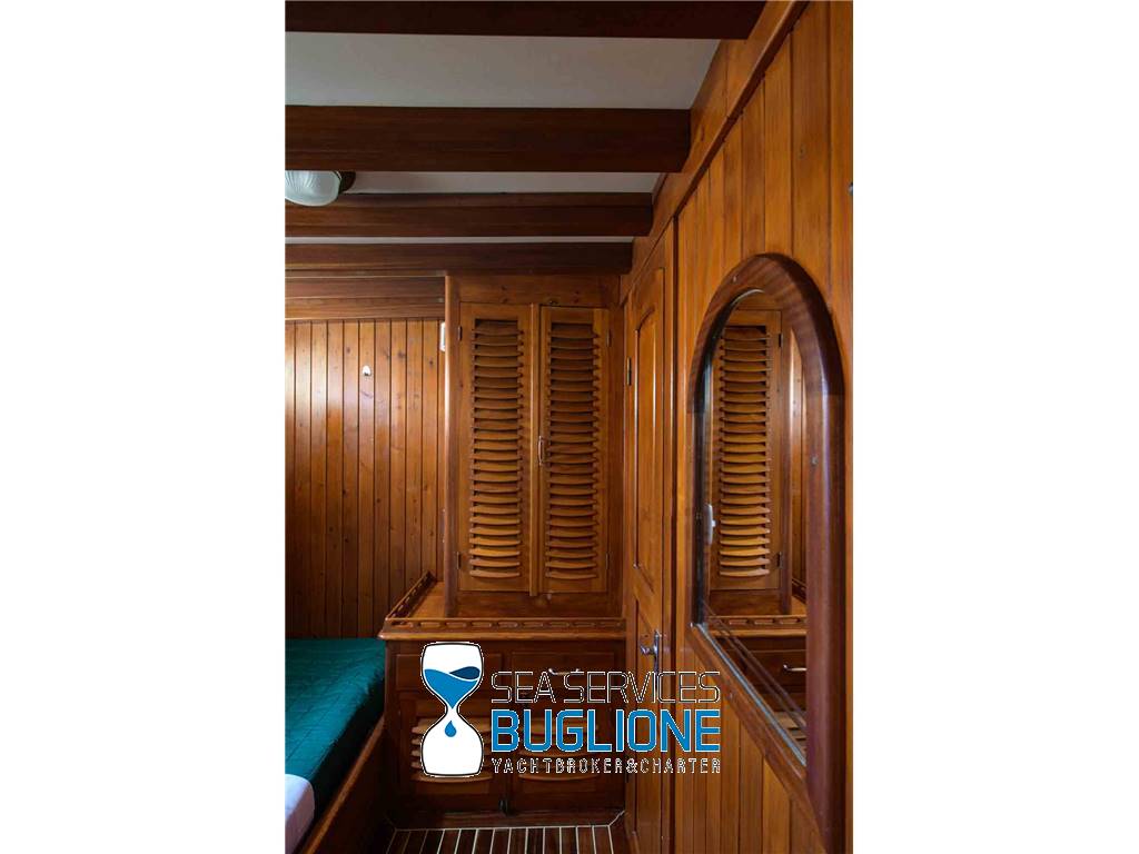 Notas internasDispone di 4 cabine matrimoniali e 2 doppie, tutte dotate di bagno privato in camera, per un massimo di 12 ospiti totali. Il mogano oltre ad essere uno dei legni più pregiati da utilizzare per la costruzione di un imbarcazione che dona grande solidità e robustezza alle strutture, ha anche un particolare fascino e delle proprietà che tendono a mitigare la temperature degli interni, che risulterà sempre piacevole rispetto alle altre. Gli ambienti sono molto alti, il primo impatto durante la scoperta della zona notte è molto piacevole il corridoio che ospita l'accesso delle cabine è davvero romantico pregiato e luminoso. Ogni cabina ha il confort e la privacy che merita ogni ospite. La barca è stata utilizzata con diligenza è le manutenzioni accurate e puntuali hanno preservato l'integrità anche dei dettagli più piccoli. Notas de la instrumentaciónStrumentazione:Radar, GPS, autopilota, Eco, Wind, VHF. Notas de armamento2 Generatori Kholer 27 kw montati nel 2020Passerella manuale inverter n.2 carica batterie 100 amp; Ariacondizionata Dissalatore 120 lt/h Cucina con piano cottura 5 fuochi e forno autoventilato, ice maker, cella frigo con congelatore E dispensa Attrezzature n.2 pompe di sentina autoinnescati da 150lt/min; n. 1 pompa antincendio meccanica; verricello ancora 1.500 kg idraulico; n.2 winch tonneggio elettrici; Attrezzatura velica: fiocco e trinchetta rullabili, randa mezzana serbatoio acqua: 6000lt; serbatoio acque nere: 3.000 lt serbatoio gasolio: 3000 lt |