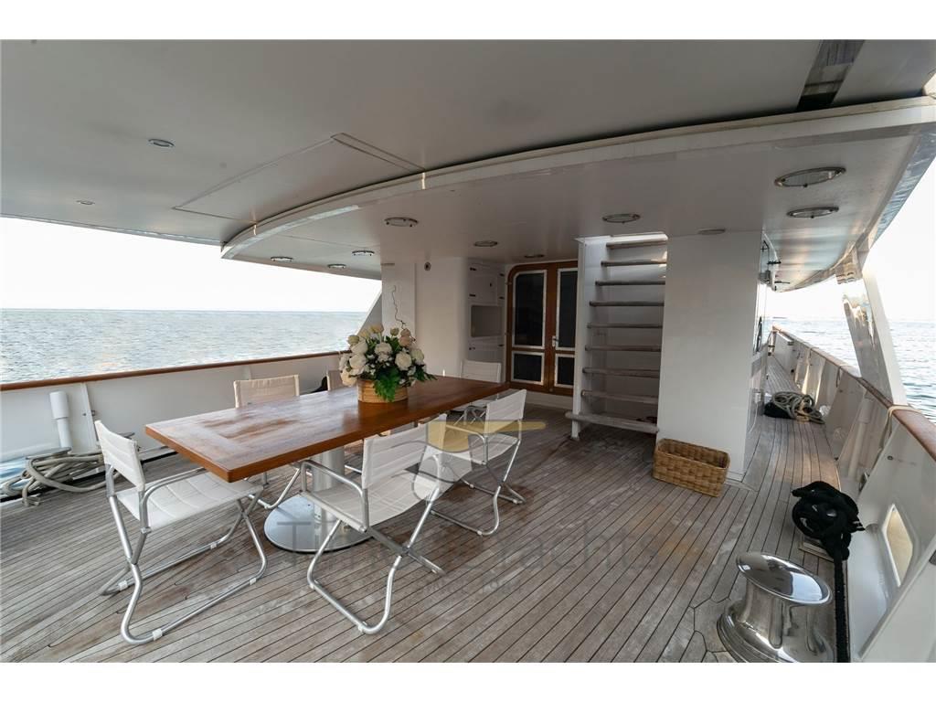 Notas internasNotas de la instrumentaciónAIS, Comando motori elettronico, Contametri catena, DSC vhf, Ecoscandaglio, GPS, Pilota automatico, Plotter, Radar, Radio VHF.Notas de armamentoAllestimento tecnico e di coperta:Camminamenti laterali in teak, Doccia esterna, Elica di prua - bow thruster (electric 60KW), 2 Gruette per tender su fly, Impianto antincendio, Lavaggio catena, Luci di cortesia, Passerella, Porta laterale, Pozzetto Teak, Presa 220V banchina, Presa acqua banchina, Scala reale, Sistema Depurazione acque nere, Stabilizzatori, Tavolo pozzetto, 2 Tender, Tromba, Winch tonneggio di poppa, Winch tonneggio di prua. Dotazioni domestiche di bordo: Aria condizionata, BBQ/ Grill, Impianto acque nere, Prese interne 12v, Prese interne 220v, Riscaldamento, Telecamera, 5 WC marino elettrico. Intrattenimento: Antenna Satellitare TV, Decoder satellite, DVD, Impianto TV, Radio AM/FM, Stereo, TV. Cucina ed elettrodomestici: Congelatore, Forno, Frigorifero esterno, Frigorifero interno, Ghiacciaia, ICE Maker, Lavasciuga, Lavastoviglie, Macchina caffè, Microonde, Piastra in vetroceramica. Tappezzerie: Bimini, Cappottina, Cuscineria completa, Cuscineria di poppa, Cuscineria fly, Cuscineria Pozzetto, Tenda Elettrica, Tendalino. |