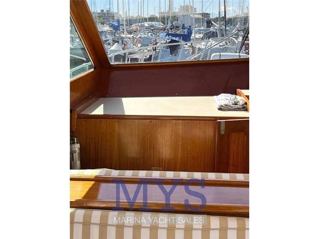 Notas internasCabina armatoriale a prua con letto matrimoniale a V Cabina ospiti con due letti singoli in piano Bagno con lavandino, wc elettrico, carabottino per doccia Dinette con due divani Cucina a L dotata di lavello, frigo, forno e fuochi Notas de la instrumentaciónStrumentazione motoriPlotter gps Eco Log VHF Elica di Prua Vericello elettrico Flaps idraulici Indicatori flaps Passerella idraulica Batterie Caricabatteria Riscaldamento Webasto Boiler acqua calda Altoparlanti Radio e stereo Autoclave Pompa di sentina elettrica Pompa di sentina manuale Salpancora elettrico Cucina Fornelli Frigo Ice maker Notas de armamentoBiminiRoll bar Spiaggetta Cuscineria completa Tavolo esterno Coperture parabrezza |