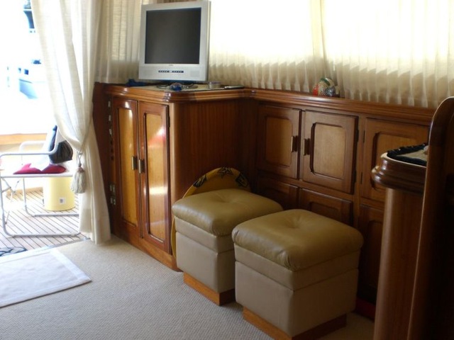 Notas internas-Interno comedor con sofá y mesa de comedor caoba Interior y beige tappezerie, pisos de madera Notas de la instrumentación-VHF-GPS-Fishfinder-radar-Autopilot-CD-radio-TV-Hot-Water caldera Mase 9 .0kw generador eléctrico molinete-baño con inodoro Tecna-LCD TV-aire acondicionado-Passerella Idraulica-aletasNotas de armamento-Totalmente refittata barco en 2010-totalmente repintado en Awl grip-casco color amaranto-cabina en teca-teca completa plataforma cojines-cristal-toppers hojas noruego Rail Tarp-Tarp total mosca cubierta al aire libre |