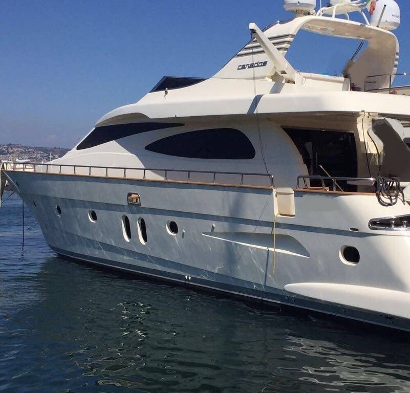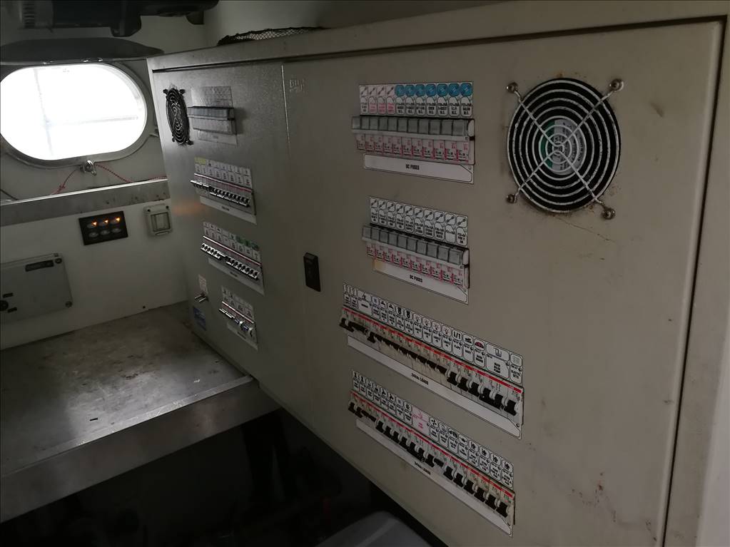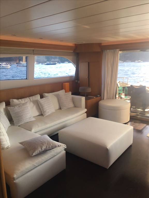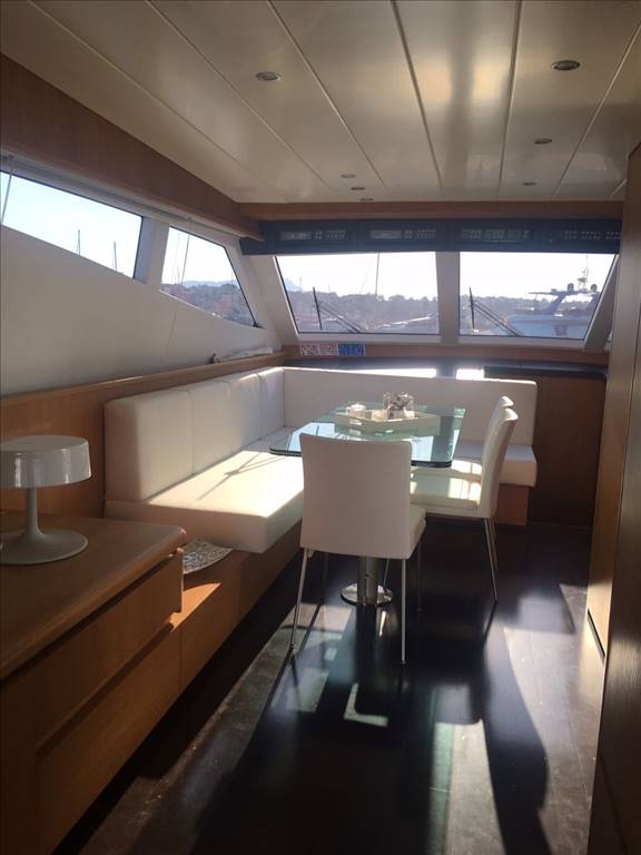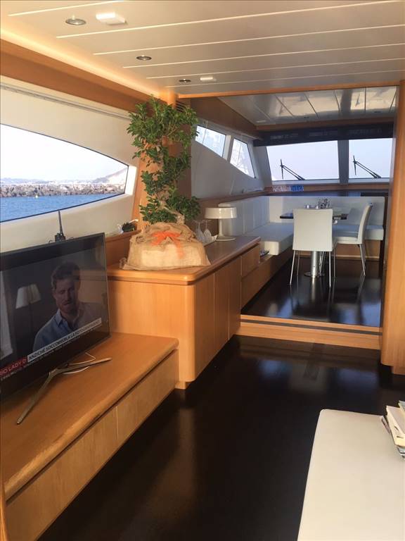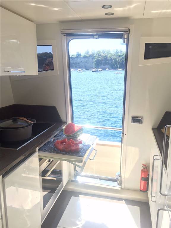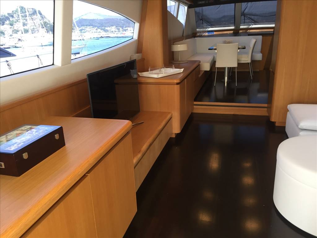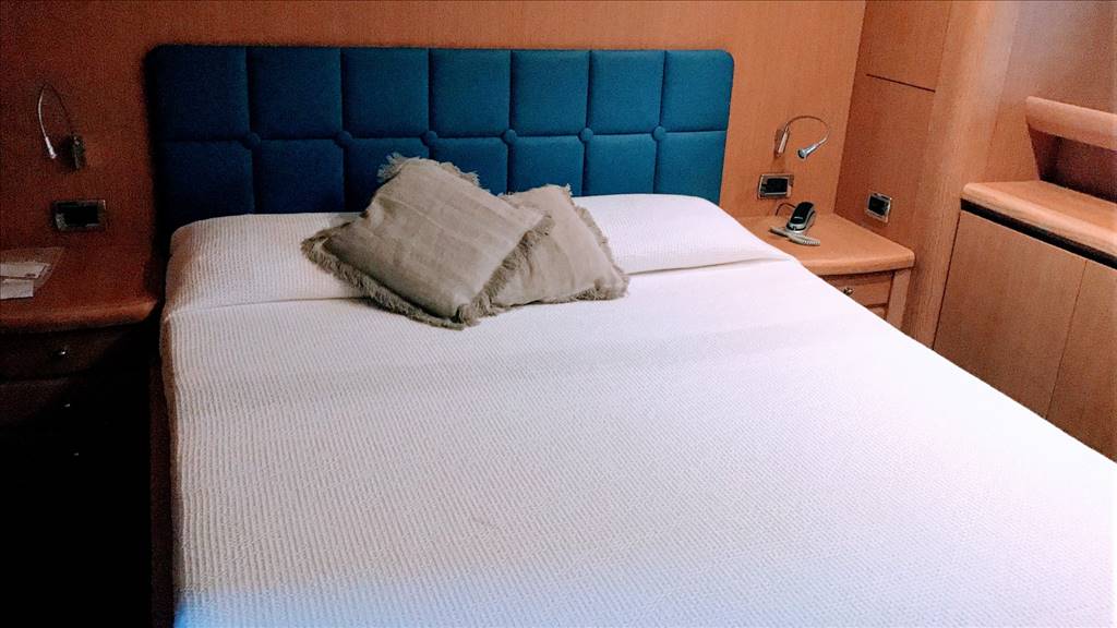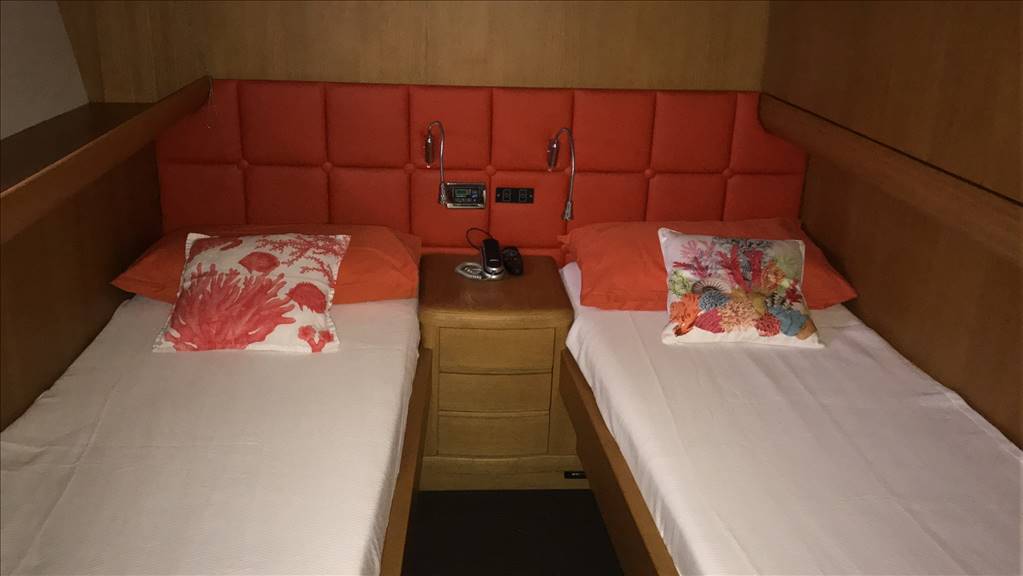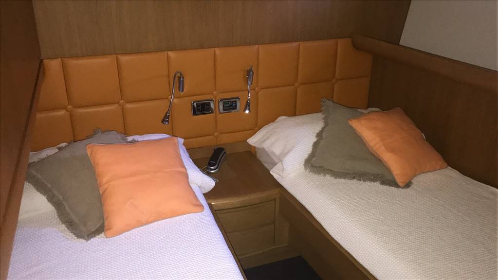 Notas internasCabina equipaggio con 2 posti letto a prua con bagno. Ampio salone con divano ad U in ecopelle bianca anno 2017,mobile contrapposto di nuova realizzazione anno 2017, zona pranzo separata con ampio tavolo oltre la panca sempre in ecopelle bianca e con 3 sedie. Cucina separata con porta esterna Tavolo sul FLY oltre seduta mobile barbeque, ampio prendisole La barca è dotata di tendalini a copertura totale del pozzetto, tendalini estivi e bimini top sul fly, Notas de la instrumentaciónvhf, eco, gps-plotter, autopilota, radar, tutto riportato sul fly.Notas de armamentoDotazione di sicurezza di base,tender 2017,plancetta affondabile,MY SKY in tutte le cabine, gru idraulica sul fly. Passerella idraulica, tender nuovo 2017, elica di prua, n° 2 gruppo elettrogeno, aria condizionata, Antenna satellitare e tv in tutti gli ambienti, dissalatore |