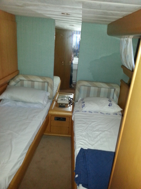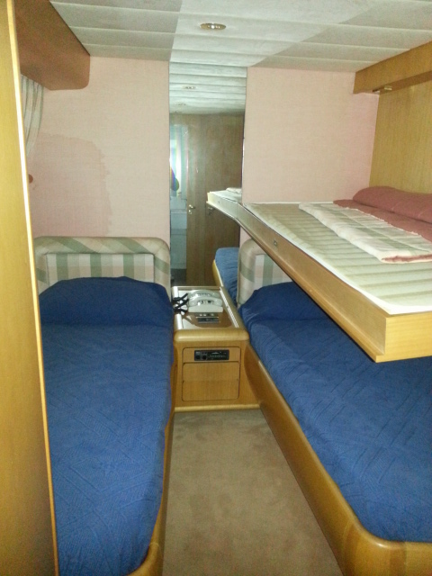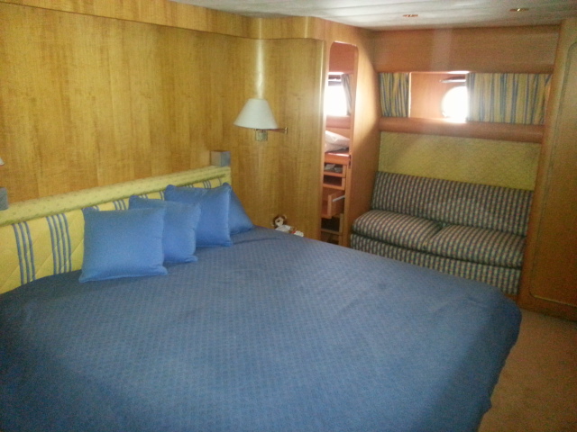 Notas internasCAMAROTE DE POPA A VIGA COMPLETA CON CAMA DOBLE Y CUARTO DE BAÑO, WALK-IN CLOSET, DOS CABINAS DE HUÉSPEDES A CAMAROTE CON CAMAS PLANAS Y LA TERCERA CON LITERAS, BAÑOS EN FORE CABINA VIP CON CAMAS Y EN BAÑO, GRAN SALÓN CON SOFà Y MESA DE COMEDOR DE ACCESO DE POPA Y LATERAL DE LAS PUERTASCONDUCIR HACIA ADELANTE ÃREAS CON CARTERGGIO, COCINA TOTALMENTE EQUIPADA CON SU ACCESO DESDE EL EXTERIOR. MAESTRO DE CABINA CON BAÑO, TRIPULACIÓN DE CABINA EN LA PROA PARA DOS PERSONAS CON BAÑO.