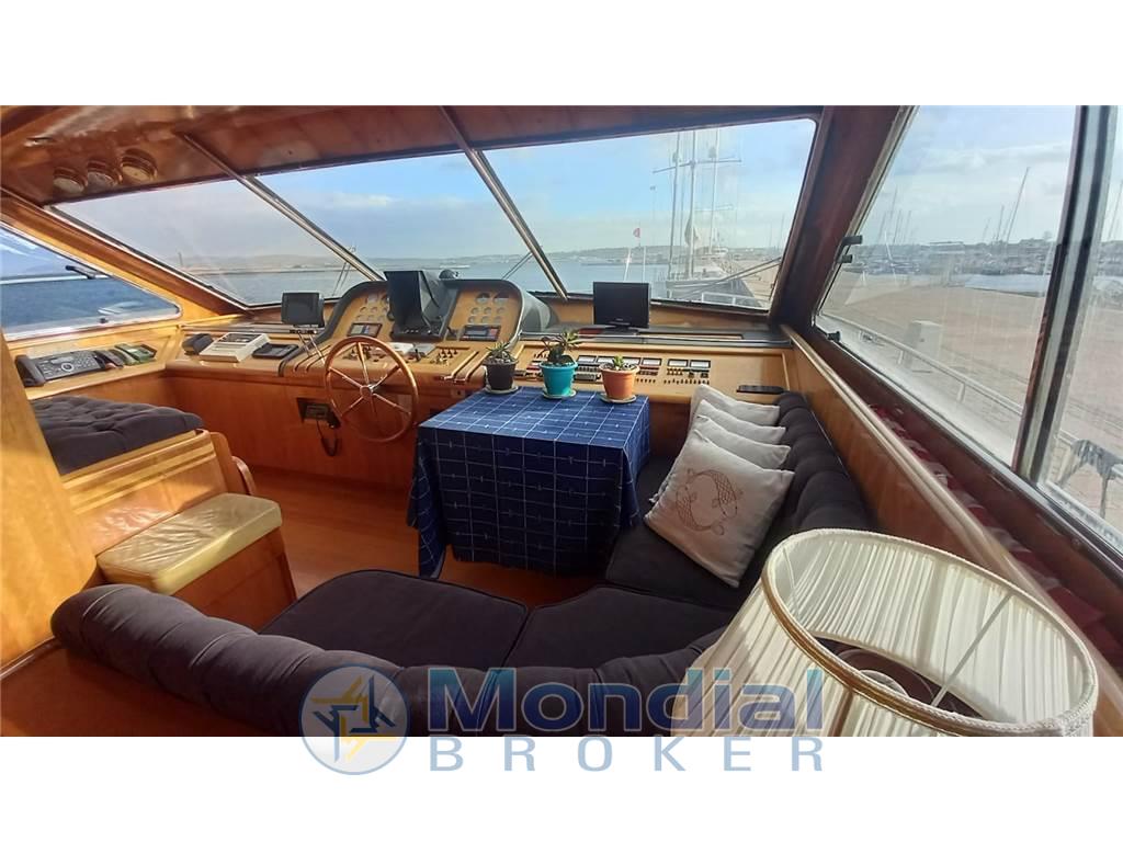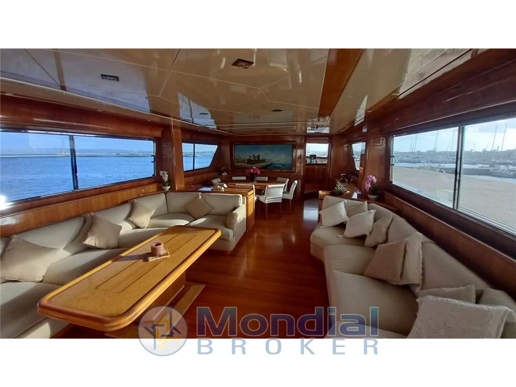 Notas internasAlloggio equipaggio a prua per due con bagno - cabina comandante a poppa con bagno. Notas de la instrumentaciónSSB Sailor - VHF Sailor - Ecoscandaglio B&G HS921 - GPS Furuno GP 500 - Plotter VDO 11’ color - pilota automatico Cetrek 741 (2008) - Radar Furuno 72 Mg.Notas de armamentoInverter 12/24/220 - aria condizionata - dissalatore 200 Lt/h (2008) - antenna satellitare Seatel 60 - TV LCD Samsung 32’ - frigobar- passerella elettro idraulica - tender. |