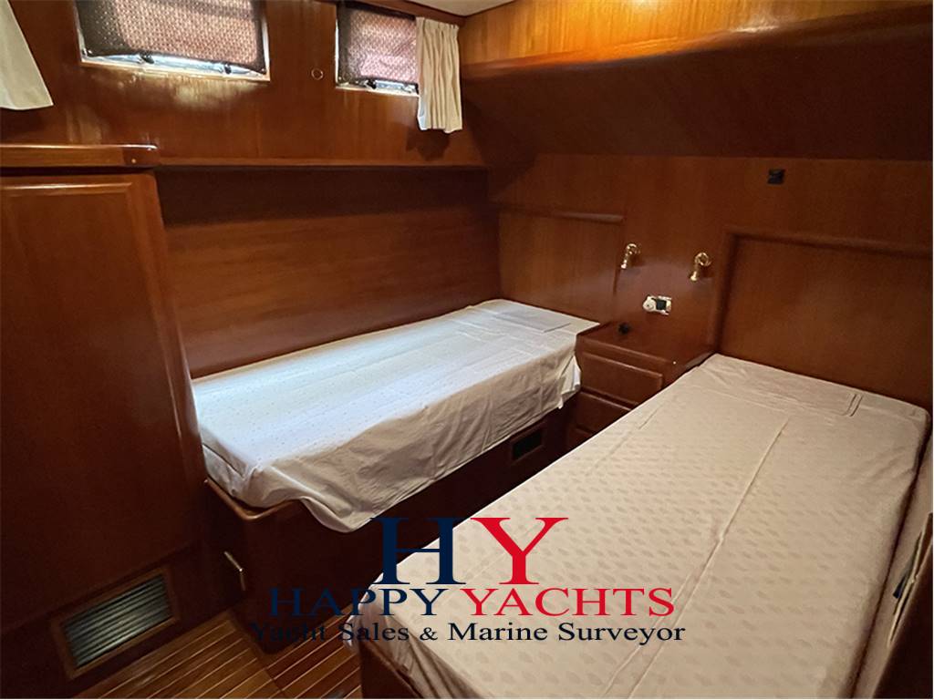 Notas internasCabina padronale di prua con letto matrimoniale e bagno e locale doccia separato. Cabina ospiti nel lato destro con n° 2 letti in piano, seconda cabina ospiti con letto in piano. Bagno ospiti con cabina doccia. Cabina marinaio con bagno e accesso da prua.