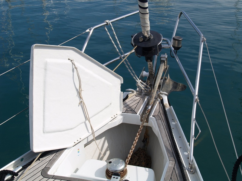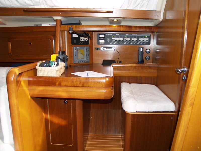 Notas de la instrumentaciónBrújula-Windex-velocÃmetro y antena de Log-Wind-Barometer-clock-autopilot-VHF-radar en árbol-Plotter Ray RL 70 carteggio Plotter Ray RL 80 caseta del timón
