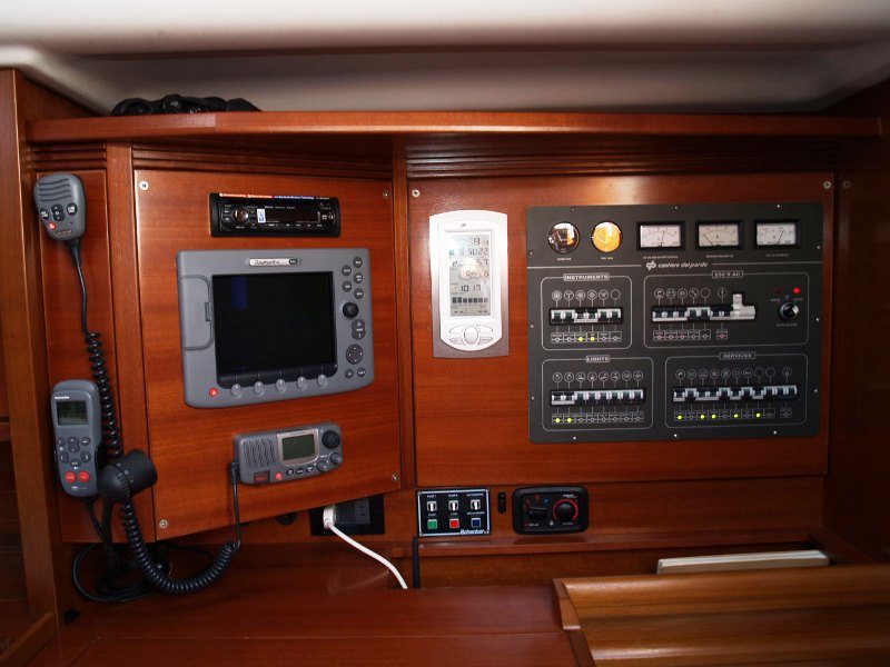 Notas internasInterior de caoba. 3 hornallas con horno. TELEVISOR LCD DE 32 ''. Piso de la cocina blanco de resina. Externos: Armarios de cabina y asientos de rejillas en columnas de teca rueda doble dirección sistemas SOLIMAR SOLIMAR toldo capota carbono guardabarros NADARAN escalera, caliente y ducha de agua frÃa Notas de la instrumentaciónBRÚJULA WINDEX velocÃmetro y reloj barómetro higrómetro viento registro inteligente regulador RAYMARINE RAYMARINE ST 6001 piloto automático RAYMARINE VHF 49 y con exterior caso FISHFINDER RADIO CD con altavoces internos y externos etiquetas de vida con dos pulseras GPS RAYMARINE E 80Notas de armamentoMÃSTIL ENROLLABLE DE CARBONO POR DEBAJO DE LA CUBIERTA RÃGIDA BOTAVARA HARKEN Y CARBONO FIBRA BAUPRÉS MAINSAIL COMPLETO BATTENED MAINSAIL ROLLER BALL PARA SELDEN SISTEM |