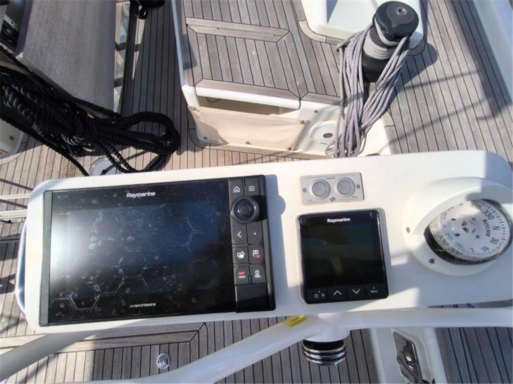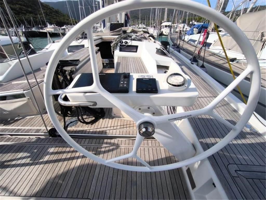 Notas internasNotas de la instrumentaciónBussola, Ecoscandaglio, Log, Pilota automatico, Radio VHF, Stazione vento.Notas de armamentoAllestimento tecnico e di coperta:Ancora, Elica di prua - bow thruster, Passerella, Piattaforma (Hydraulic), Pompa di sentina elettrica, Scaletta da bagno, Tavolo pozzetto, Winch Elettrico (Electric). Dotazioni domestiche di bordo: Aria condizionata. Dotazioni di sicurezza: Zattera di salvataggio. Intrattenimento: TV. Cucina ed elettrodomestici: Congelatore, Fornello (Gas), Forno, Frigorifero interno (Electric). Tappezzerie: Bimini, Cappottina. Vele: Randa, Fiocco, Avvolgi Fiocco. |