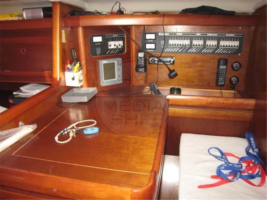 Notas internasNotas de la instrumentaciónBussola, Ecoscandaglio, GPS, Log, Pilota automatico, Radio VHF, Stazione vento.Notas de armamentoAllestimento tecnico e di coperta:Ancora, Passerella, Pompa di sentina elettrica, Scaletta da bagno, Winch Elettrico (Electric). Cucina ed elettrodomestici: Fornello (Gas), Forno, Frigorifero interno (Electric). Tappezzerie: Bimini, Cappottina. Vele: Randa, Spinnaker, Tormentina, Fiocco, Genoa, Avvolgi Fiocco. |