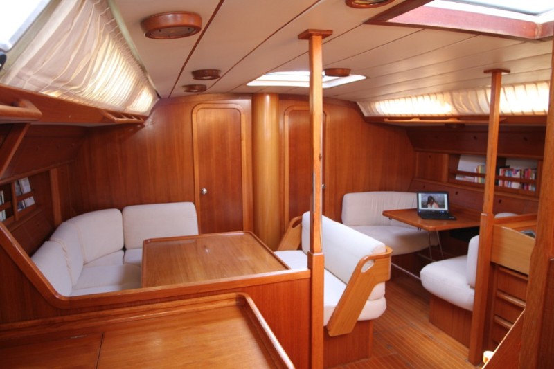 Esta señora del mar, diseñado por German Frers, personalizado por su dueño con el molinillo de café 2, cautiva gracias a interiores de teca sólidas, suntuosa cabina de popa, en el amplio comedor con sofás oposición dobles, la correspondencia tradicional envolvente. Barco clásico y elegante, caracterizada por baja francobordo y un Regal: Stern se mueve bien con poco viento, y un paseo en la onda siempre suave, gracias al importante desplazamiento. Dar viento y le dará km! Necesita una nueva cubierta de teca y cualquier intervención de maquillage debajo de la cubierta. |